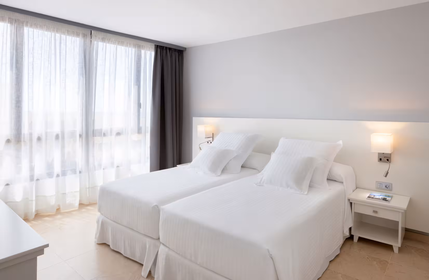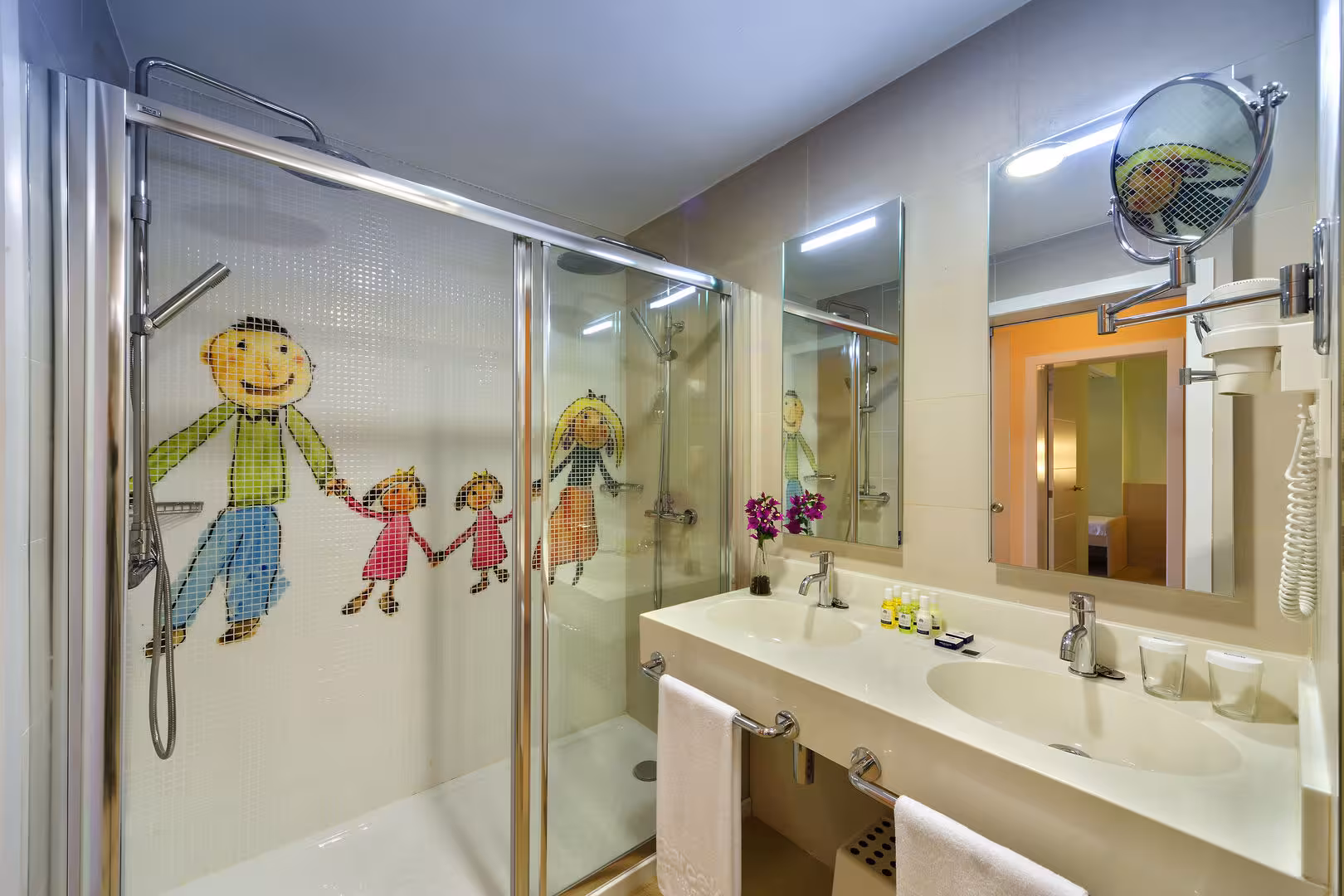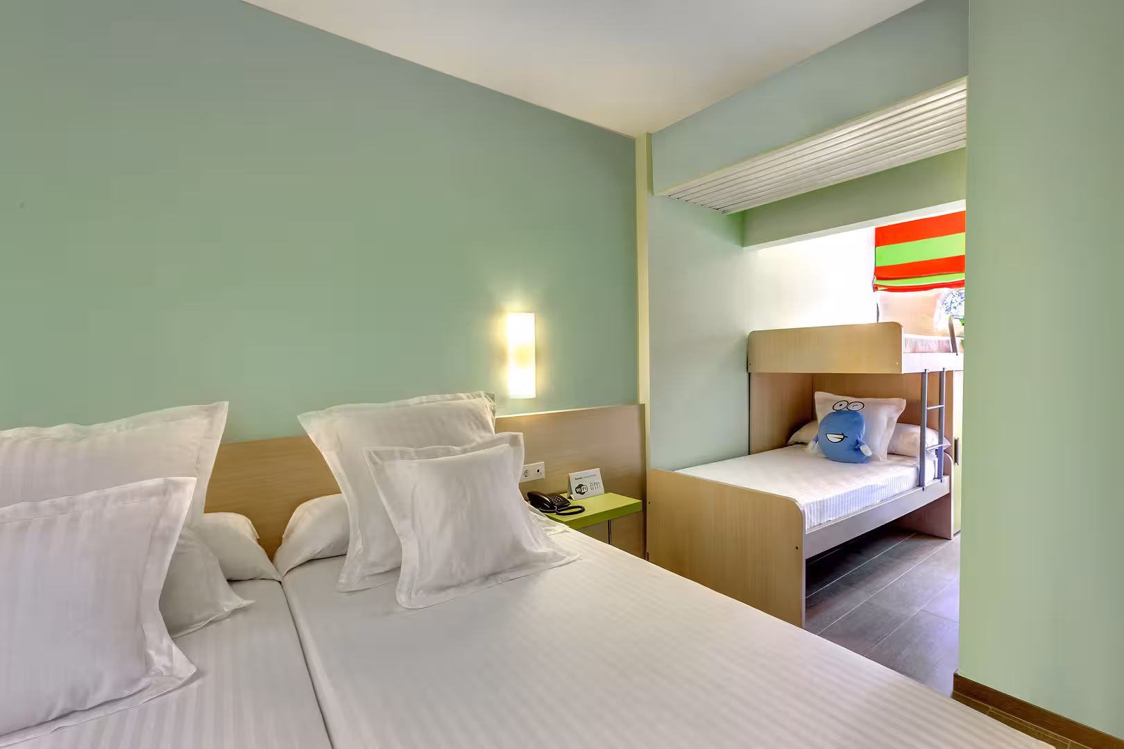 Rooms are equipped with air conditioning. Guests can enjoy the sea view from a balcony or terrace. The rooms have a queen-size bed and a sofa bed. Separate bedrooms are available. Children's beds and extra beds can be requested for younger guests. A safe, a minibar and a desk are also available. A refrigerator, a mini fridge, a microwave and a tea/coffee station are standard features. A direct dial telephone, a television with satellite/cable channels and WiFi (no extra charge) are provided as well. A hairdryer and bathrobes are available in the bathrooms, which are equipped with a shower and a bathtub. For extra comfort in the bathrooms, guests are offered cosmetic products. Guests can also book wheelchair-friendly rooms with wheelchair-accessible bathrooms. The complex has family rooms and non-smoking rooms.