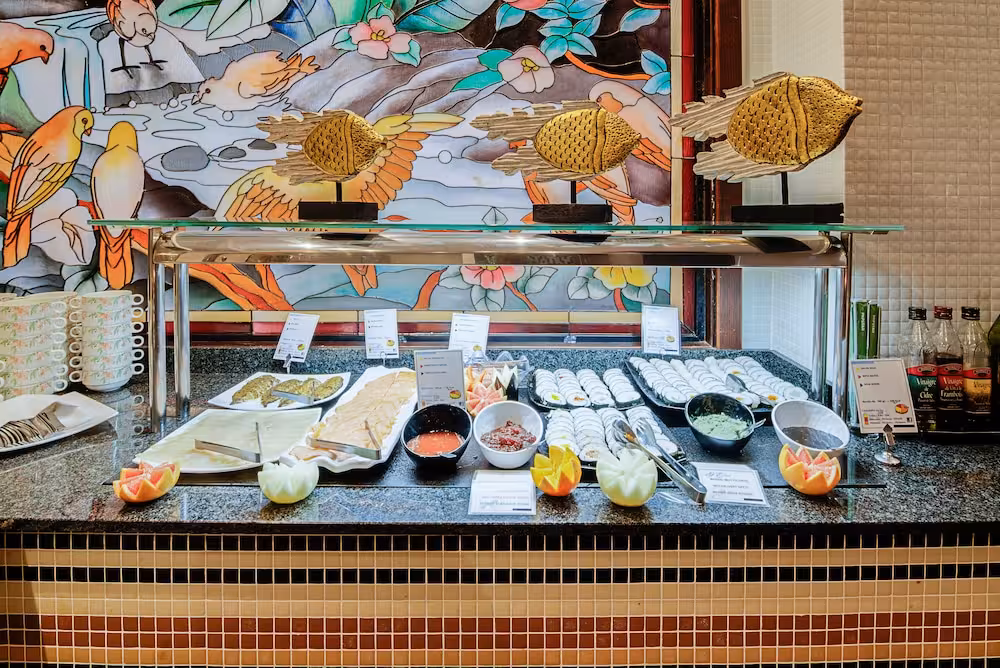 Dining facilities include a café and a bar. A number of specialities await guests in the air-conditioned, non-smoking restaurant. Catering options include half board and all-inclusive. All-inclusive holidaymakers enjoy special extras like snacks, in addition to a selection of alcoholic and non-alcoholic beverages. A delicious and varied buffet is prepared for breakfast and dinner every day, and a set menu can be ordered at lunch. Diet meals, gluten-free meals and vegetarian dishes can be prepared on request. The hotel also offers special catering options. The show cooking is a particularly special attraction.