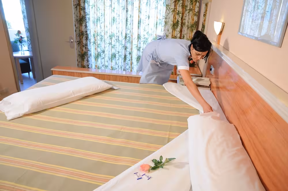 The hotel has 32 junior suites and 372 double rooms, which are located on 4 storeys and are reachable by lift. Check-in and check-out are possible at any time at the 24-hour reception desk. Amenities available at the hotel include a baggage storage service, safe, currency exchange service, cash machine and drinks machine. Wireless internet access allows guests to stay connected while on holiday. The tour desk offers assistance with booking excursions. The hotel has a range of facilities for guests with disabilities. Wheelchair-accessible facilities are available. A number of shops, including a supermarket and souvenir shop, are great for shopping or just browsing. The grounds of the hotel feature a playground and a lovely garden. Additional amenities include a newspaper stand, a TV room, a playroom and a library. Parking spaces are available to guests travelling by car. Other services include a babysitting service, a childcare service, a car hire service, medical assistance, room service (for a fee), a laundry service, a hairdresser, a coin-operated laundry and a hotel shuttle bus. Bicycle storage is available to guests. There is a bike hire service as well. Complimentary newspapers are available. The business centre is on hand for guests' business requirements and provides a fax machine.
