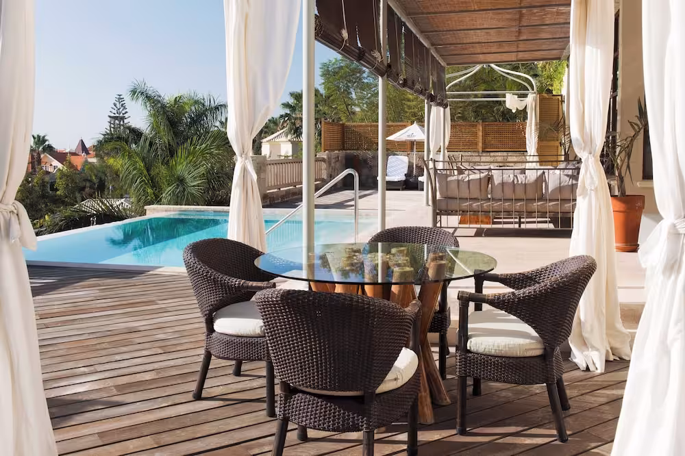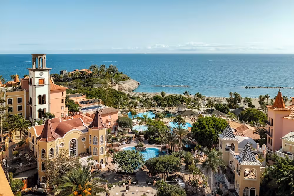 The hotel is located in the tourist area of Costa Adeje, on the beach front of Playa del Duque beach. Playa de las Americas is only 4 km away and is easily and quickly reached with local public transport. There is a bus stop located very close to the hotel. Tenerife South airport is 22 km away and Tenerife North airport 80 km away.