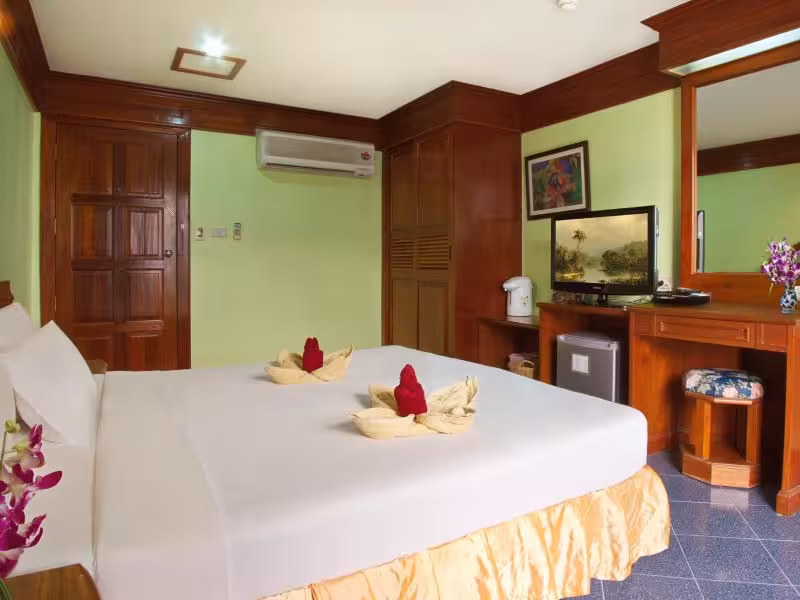 This hotel is located at the southern end of the popular destination of Patong and is separated by just one block from beautiful Patong beach (about 500 m). Surrounding the hotel guests will find countless restaurants, bars, shops and night spots, all within a 5-minute walk. It lies about 1 km from Jungceylon Shopping Centre, 1.2 km from Bangla Road, some 7 km from Karon Beach and around 10 km from Kata Beach. Phuket Fantasea is roughly 11 km away and it is some 14 km to Phuket Town and 21 km to Promthep Cape. Phuket Airport is approximately 38 km away.