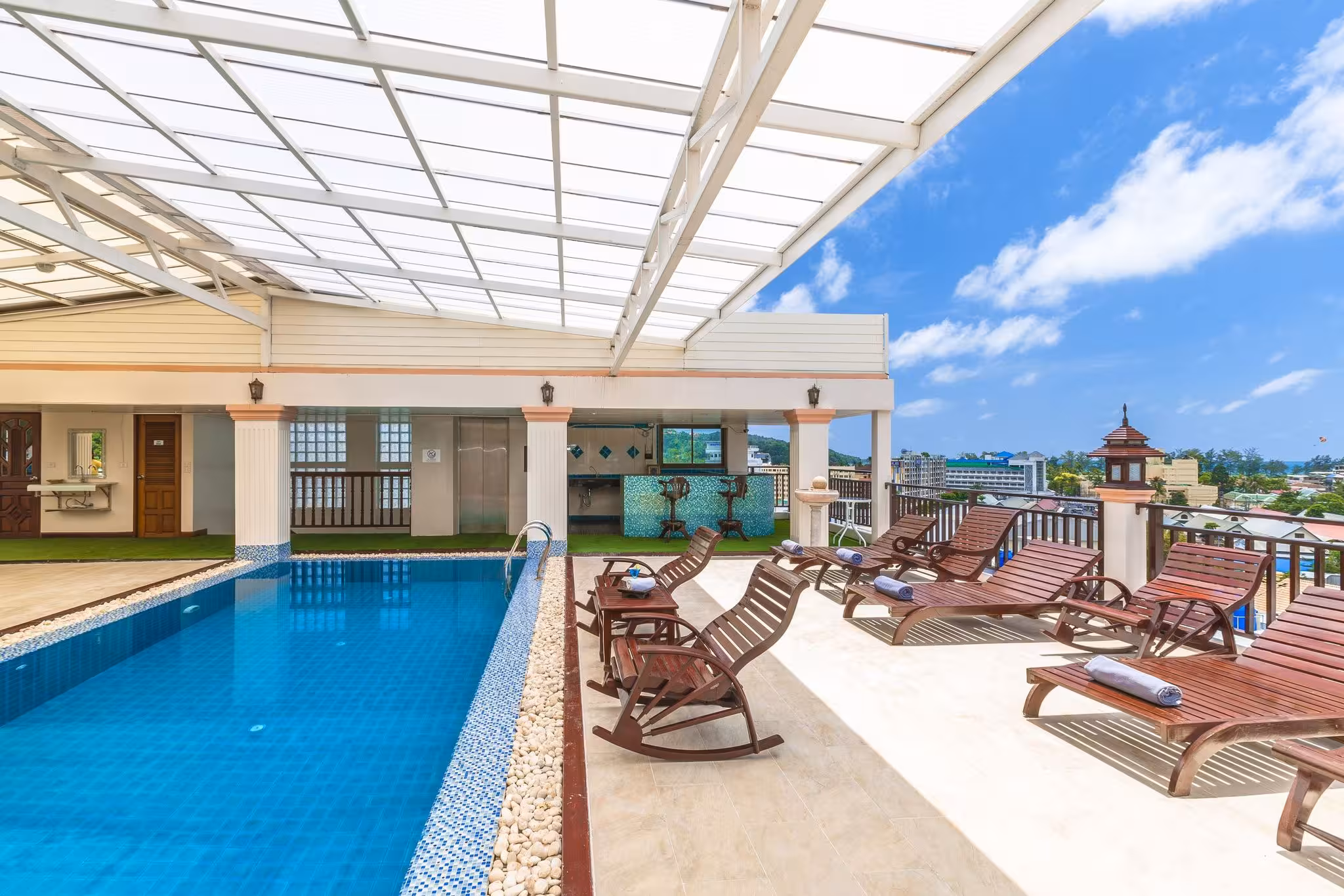 The aparthotel is located in the entertainment district of Patong. It is conveniently situated only 10 minutes’ walking distance from the Jungceylon shopping centre. The coast is just about 1 km from the aparthotel and Phuket International Airport is around 15 km or a 45-minute drive away.