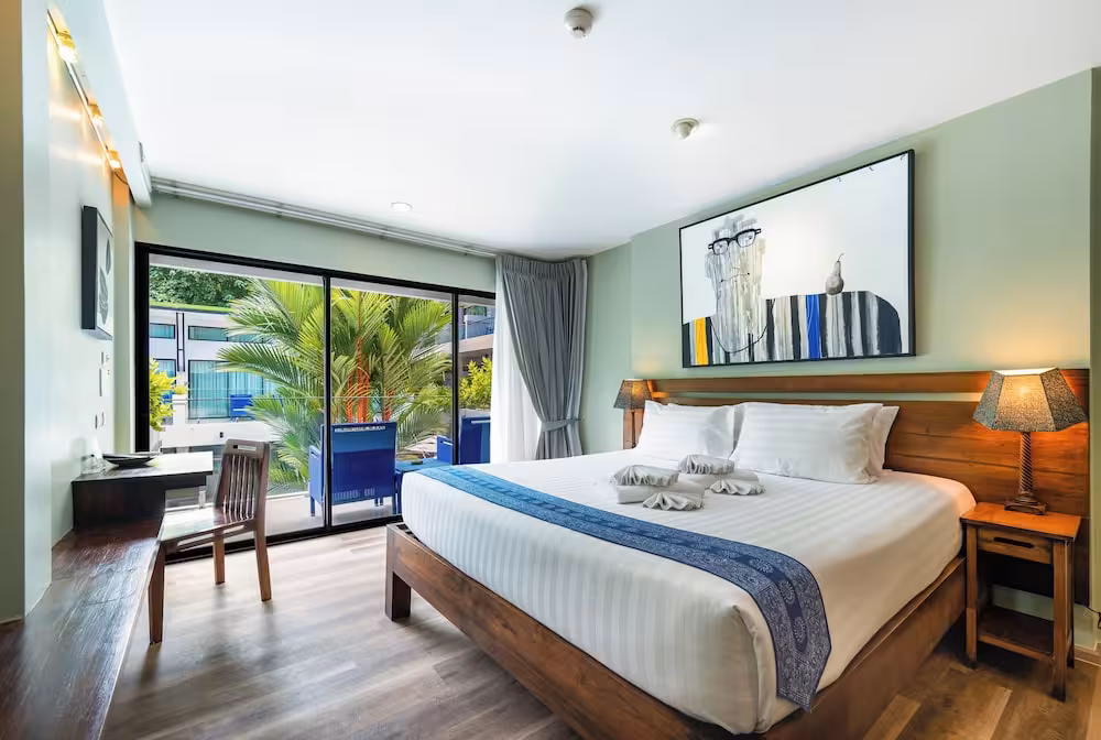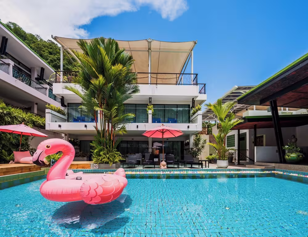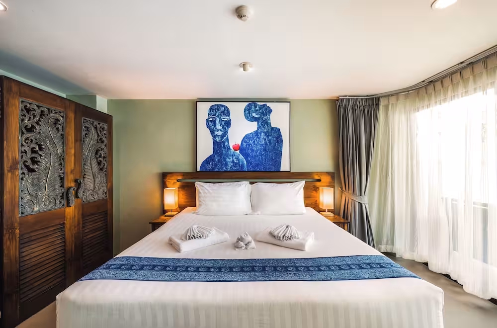 The hotel is located on the southwest side of Phuket Island, which lies in the Andaman Sea, surrounded by smaller islands. It is just a 5-minute drive from the sandy beaches of Kata and Karon. 15 minutes by car from the hotel guests will find nightspots, the tourism centre and shopping venues. Phuket Town is a 30-minute drive away and Phuket Airport is 50 km away.