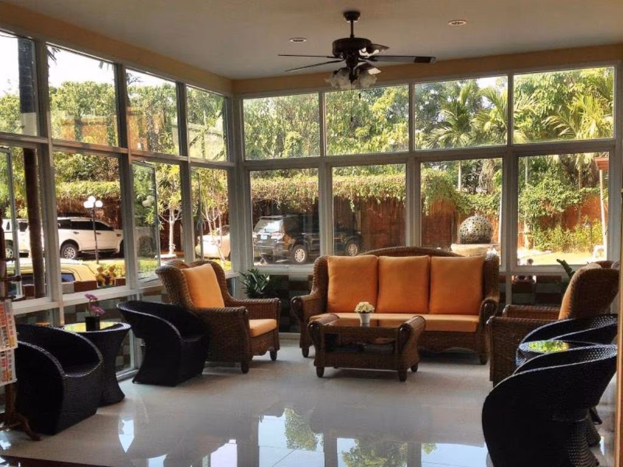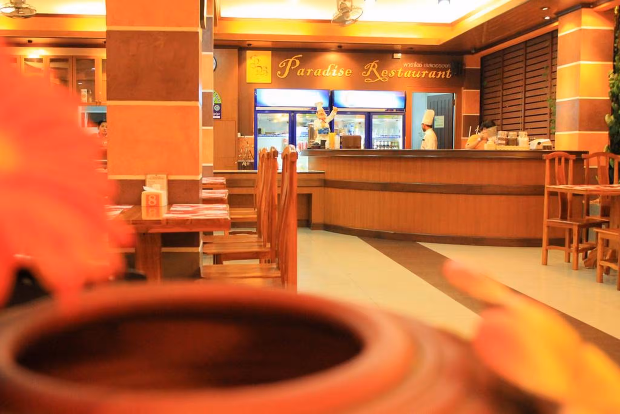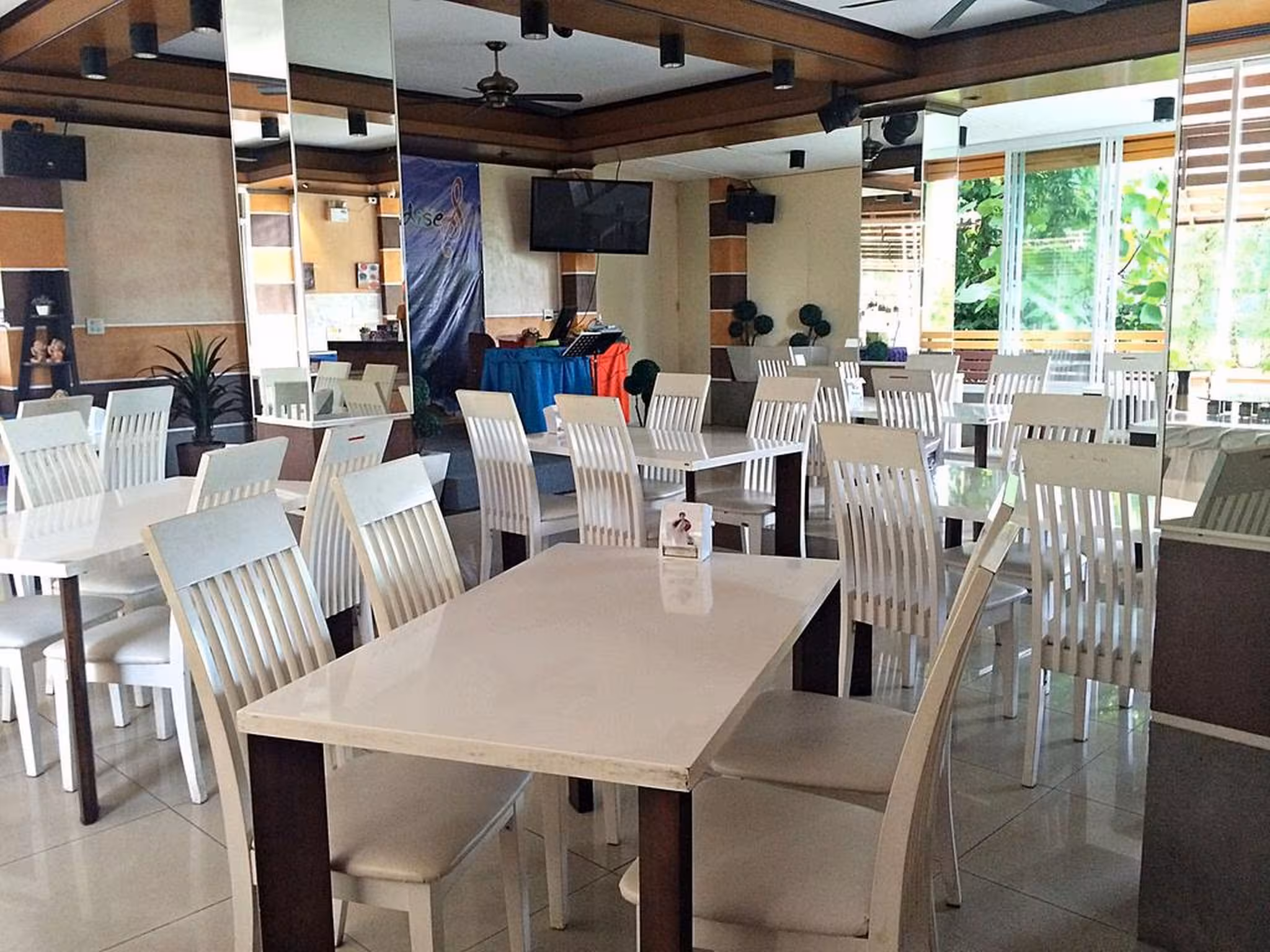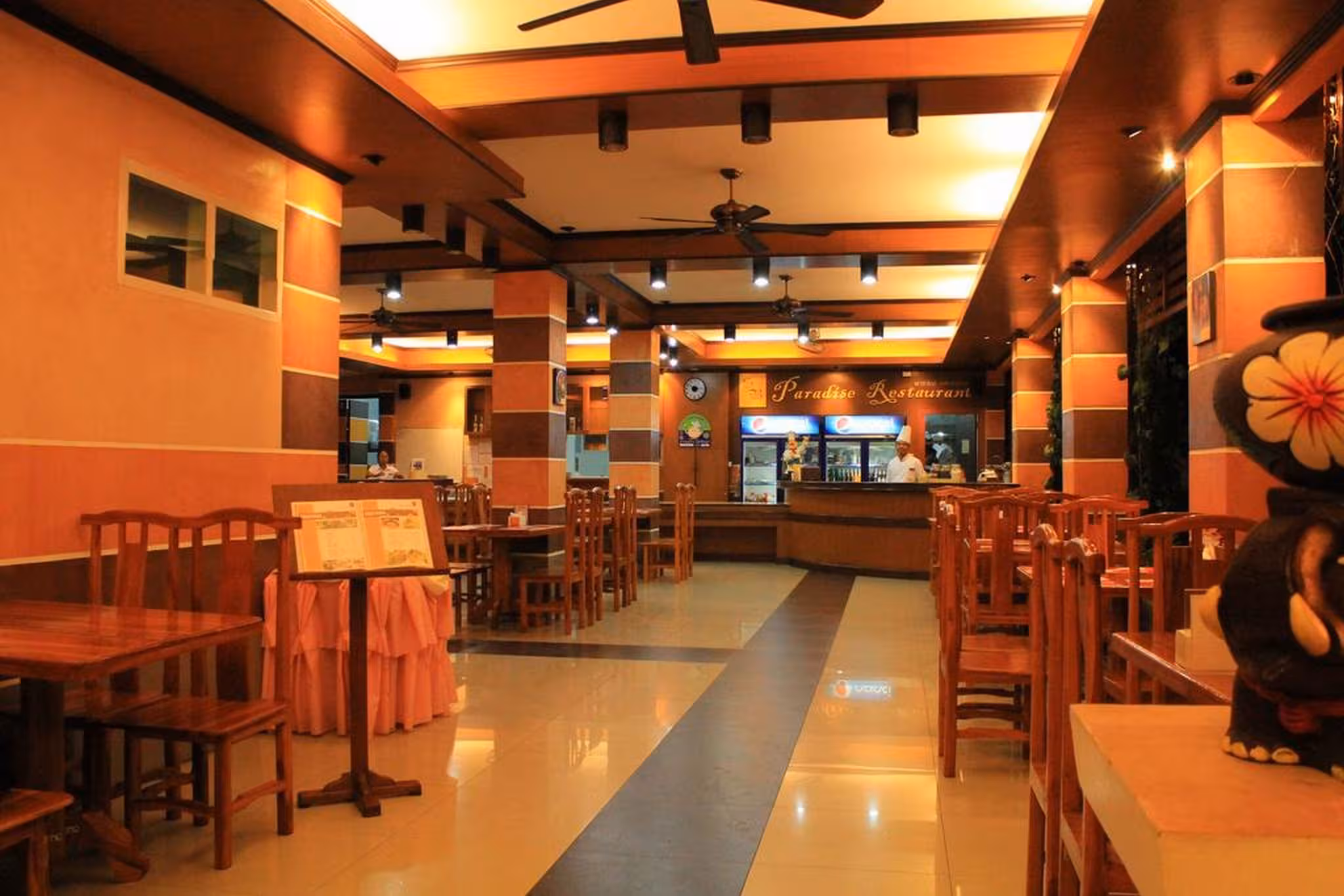 The dining area includes a restaurant and a café. Breakfast and lunch are served every day. Alcoholic beverages are available.