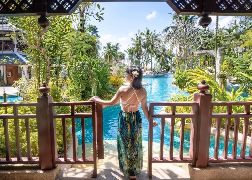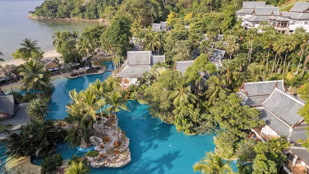 This beach resort is an ideal holiday destination if guests are seeking a tropical paradise. Nestled amidst acres of tropical gardens and caressed by the warm waters of the Andaman Sea, the resort is an ideal retreat tucked away on the stunning island of Phuket. It is located at Nakalay Bay, right on the beach on the sunset side of the tropical island. Phuket provides all guests with gracious Thai hospitality, wonderfully complemented by the beauty of the natural surroundings. The hotel is located just 5 minutes away from the island's most popular spot, Patong Beach, with its sensational nightlife, entertainment and shopping areas. Phuket International Airport is 40 km away, while the distance to Phuket town is 25 km.