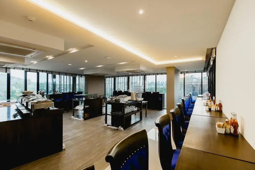 The dining area includes a restaurant and a bar.