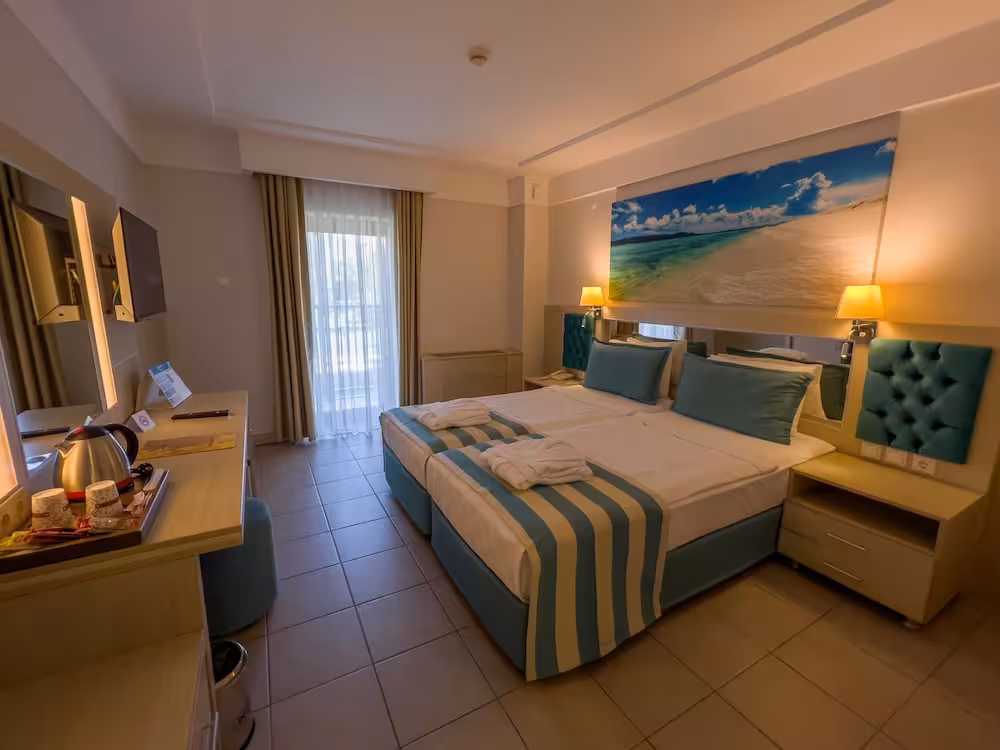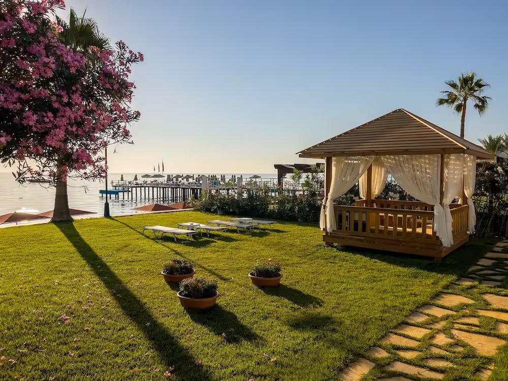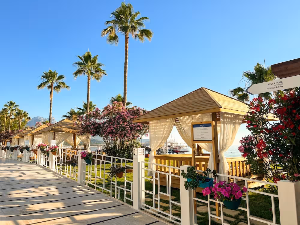 The resort is located just 1 km from the city centre in Kemer, with its fascinating harbour and restaurants, bars and shopping facilities. It is just 55 km or 60 minutes from the airport in Antalya. It marks the meeting point of the Taurus Mountains and the crystal blue waters of the Mediterranean Sea. Demre is 90 minutes away by car, while Phaselis and Aspendos are 20 and 120 minutes away respectively.