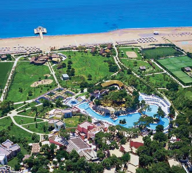 The complex is located in the Sorgun/Titreyen area of Side, close to a pine forest and situated on a long, sandy beach. Links to the public transport network are in front of the hotel. Antalya Airport is 65 km from the hotel.