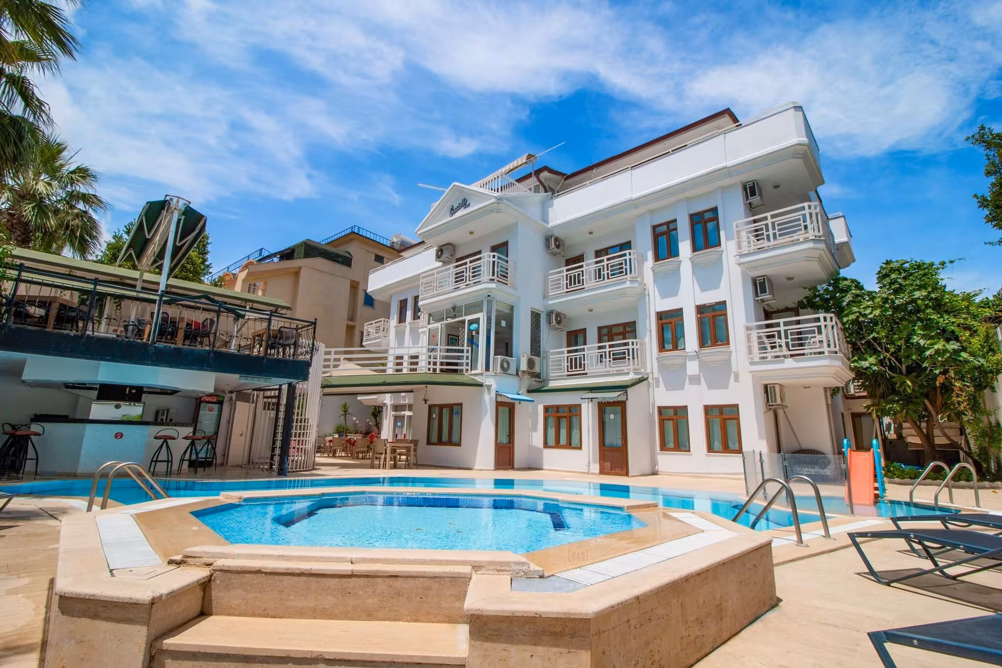 This apartment hotel is located in Kemer, right on the beach.