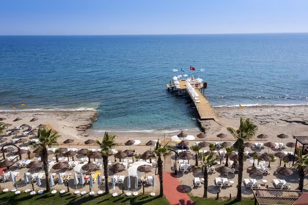 The hotel is located in Konakli, 12 km from Alanya, situated on a wonderful private sandy small pebble beach in the touristic centre of Konakli. Links to the public transport network are within around 15 minutes' walk. Antalya Airport is situated at a distance of approximately 120 km.