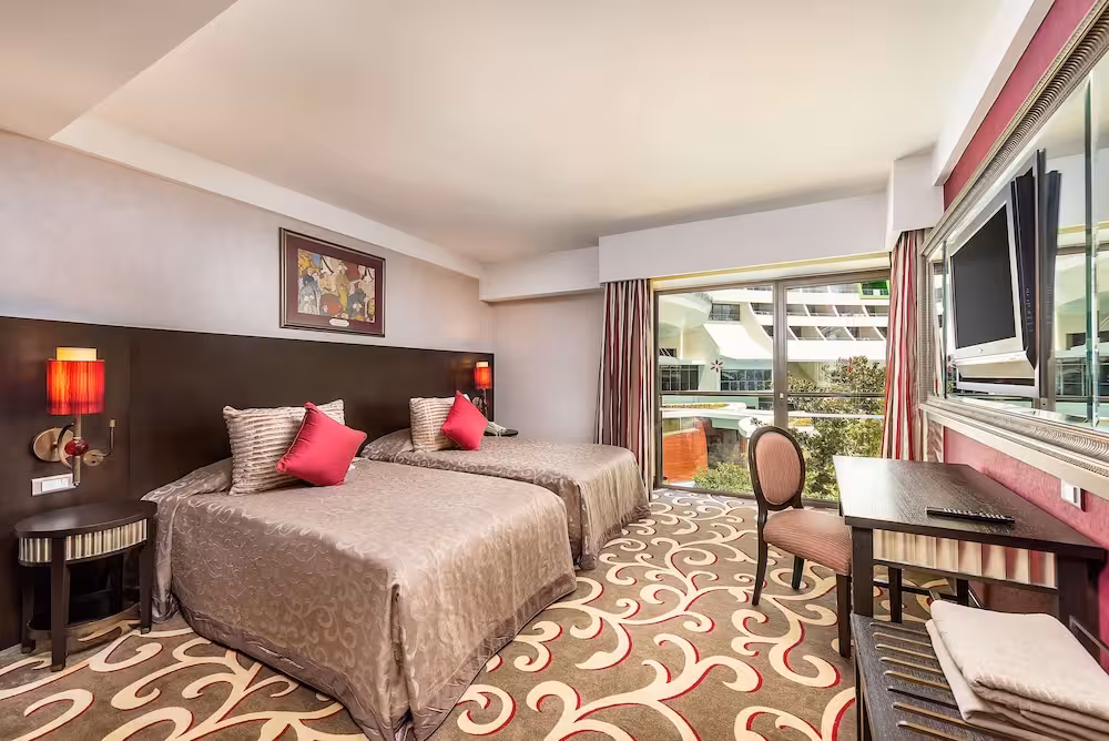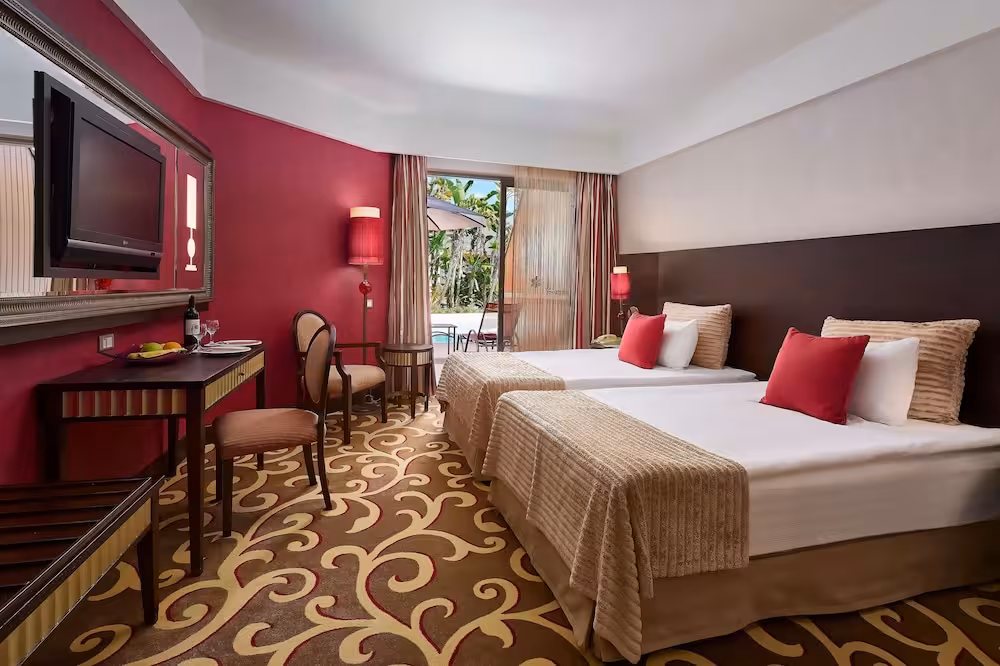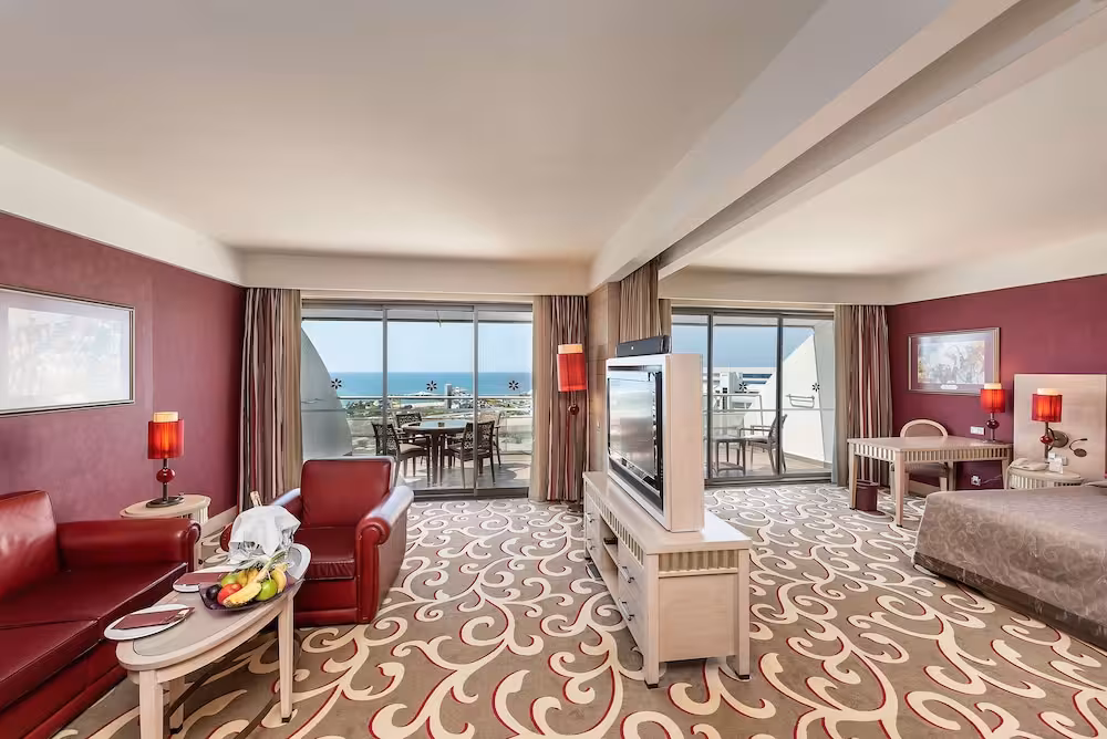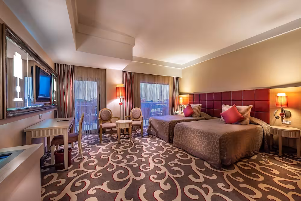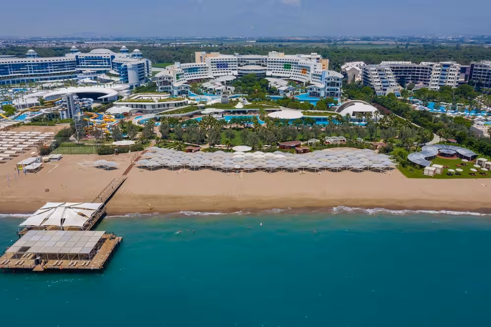 This hotel is located right on the sandy beach in Iskele Mevkii, a fine part of the glorious Belek coast. Guests will find the centre of Belek, with its bus station and tourist centre, just 4 km away. The hotel lies approximately 45 km from Antalya city centre and 35 km from the Antalya Airport.