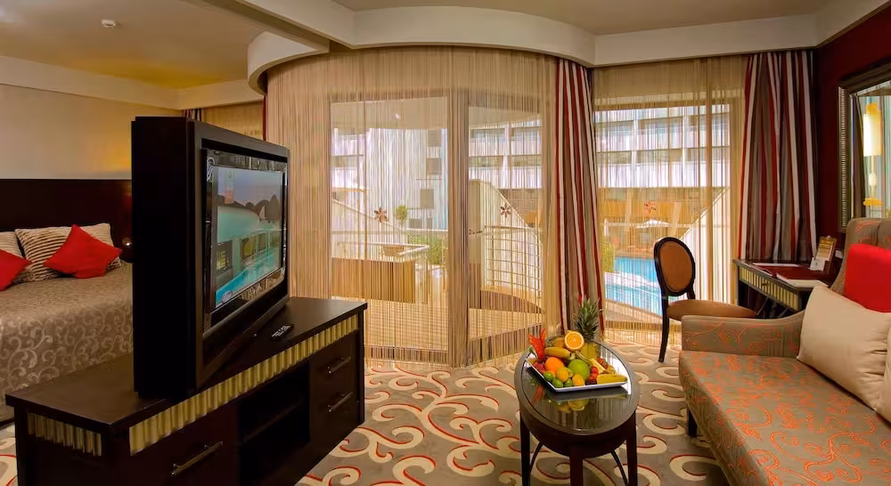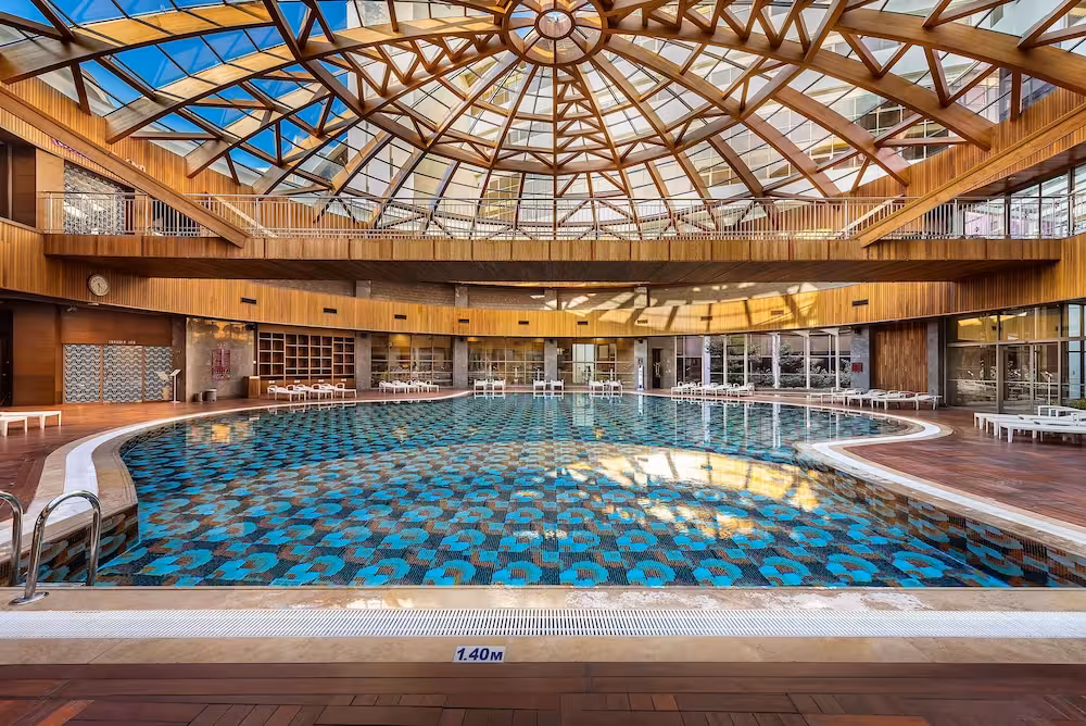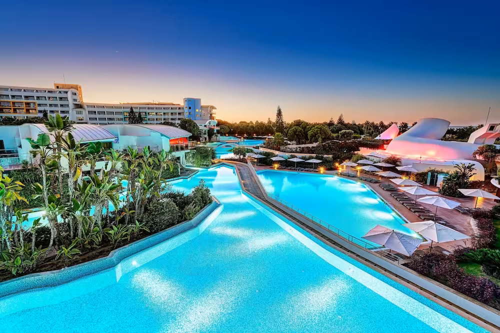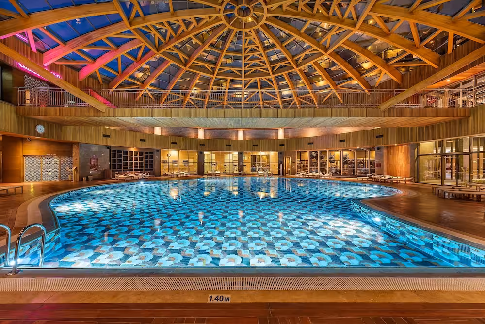 The spacious pool area, which includes 7 outdoorpools, is a great place for guests to relax and take a refreshing dip. Even on cool days, swimming is always at option at the indoor pool. Kids can splash around in one of the 3 children's pools. Pure relaxation in the hot tub, fun on the waterslide and refreshing drinks at the pool bar – guests will experience just how rich and varied a day in the water can be. A short break or an entire afternoon on the sun terrace, which features sun loungers and parasols, is time well spent. The complex offers an extensive outdoor sport and leisure programme, which includes bocce, beach volleyball, volleyball and basketball. For a fee, guests can also enjoy tennis and golf. With water aerobics or, for a fee, water skiing, windsurfing, jet skiing, motorboat rides, paddle boating, banana boat rides, canoeing, sailing and aquafit available, fans of water sports have plenty of options to choose from. A wide range of indoor sporting activities are also offered, for example a gym, table tennis, badminton, darts, yoga, callisthenics, aerobics and pilates or, for a fee, billiards and bowling. There is a wellness area with a spa, a sauna, a steam bath and a hammam and, for an additional fee, a beauty salon and massage treatments. Third-party operators offer a beauty salon. Additional leisure activities include an entertainment programme, a kids' club, a kids' disco, live music and a dance club.