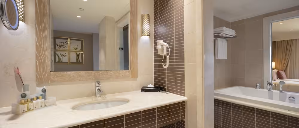 Air conditioning ensures that rooms maintain comfortable temperatures. A welcome gift awaits guests. A balcony or terrace is among the standard features in the rooms. A minibar and a desk are also available. A telephone, a flatscreen television with satellite channels and WiFi (no extra charge) provide all the essentials for a comfortable holiday. Slippers are included. Bathrooms are equipped with a baby bath. A hairdryer, a vanity mirror, bathrobes and a telephone are on hand in the bathrooms for everyday use. As a special feature, bathrooms are also stocked with cosmetic products and a selection of towels. Family rooms are available for parents with children.