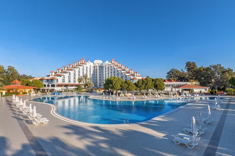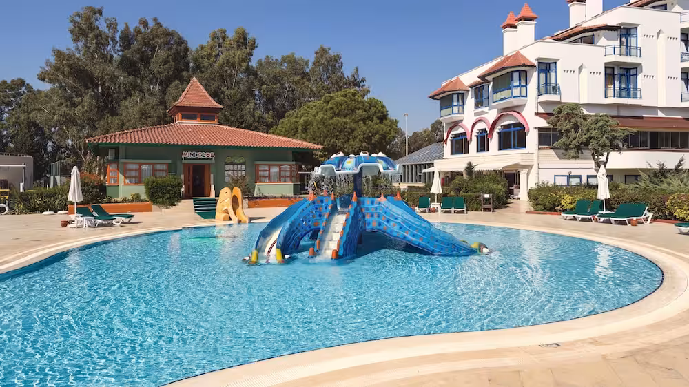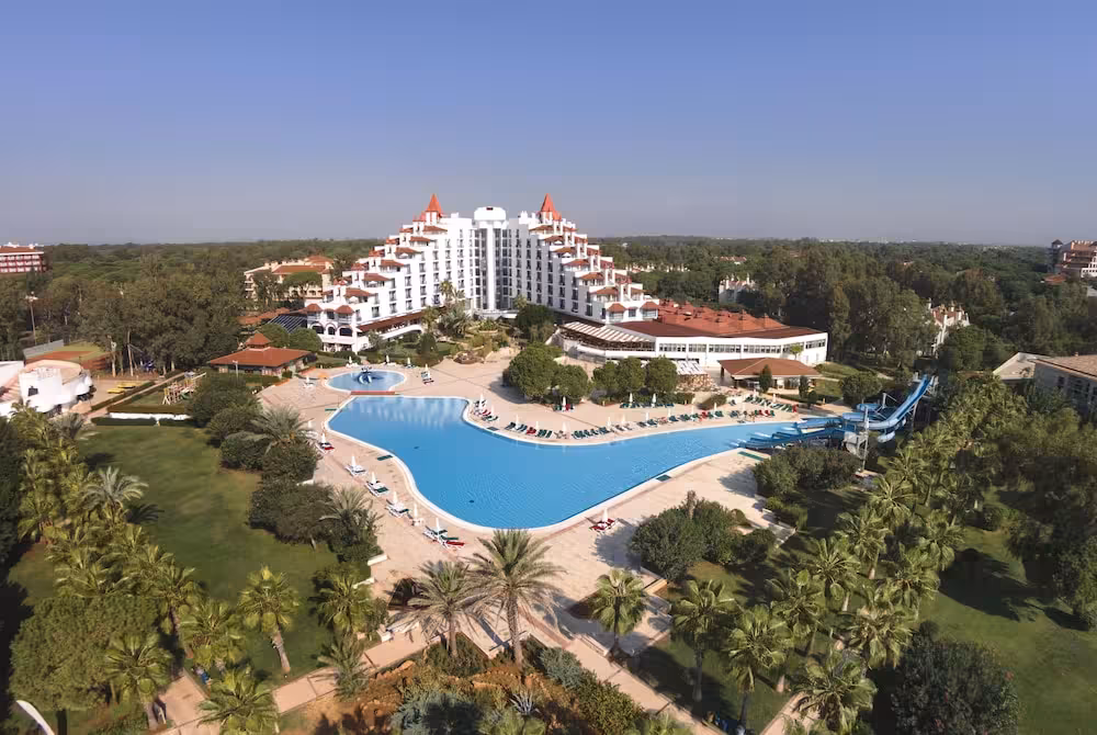 This family-friendly beach hotel is just 7 km from Belek, on a long, sandy beach within 5 km of the small town of Kadriye where guest will find numerous shops, restaurants and bars. The ancient sites of Perge and Aspendos are within 30 km, and Antalya and its nightlife is also around 30 km away. Antalya Airport is approximately 25 km from the club resort.