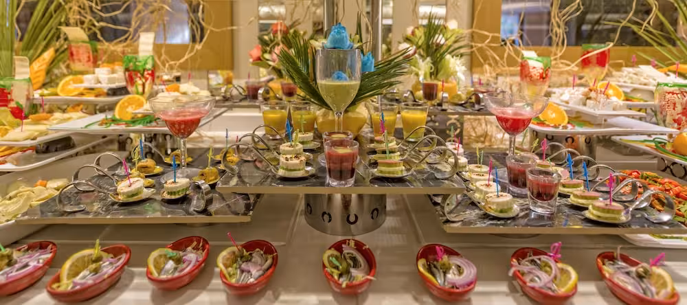 Dining facilities include a café, a bar and a lobby bar. Warm hospitality and a cosy atmosphere await guests in 5 non-smoking restaurants. Refreshing drinks at the beach bar are a perfect way to enjoy warm weather. All-inclusive special can be booked. A delicious and varied buffet awaits guests at breakfast, lunch and dinner. Diet meals and children's meals can be prepared on request. In addition, special catering options and snacks are available. The show cooking is a particularly special attraction. The resort offers a selection of alcoholic and non-alcoholic beverages.