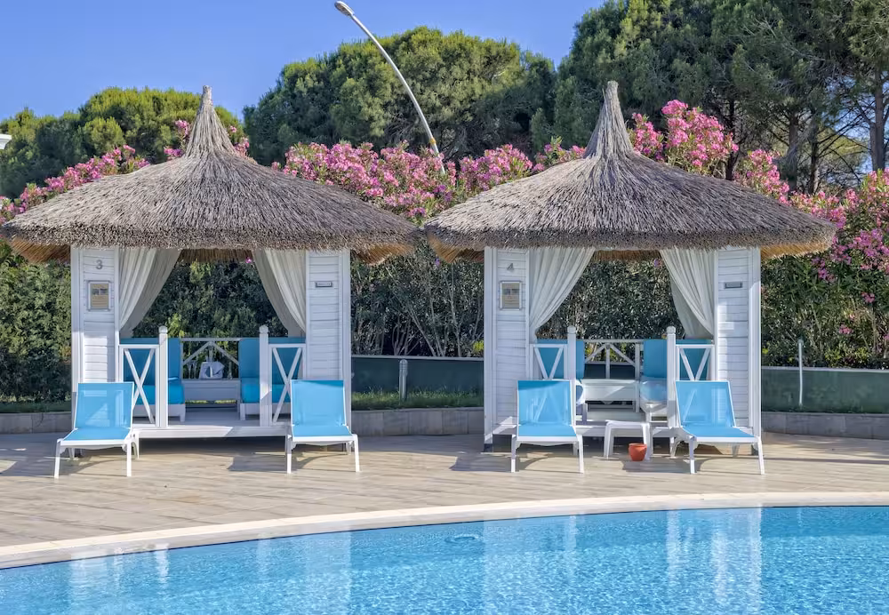 The pool complex, which includes 4 outdoor pools and 2 children's pools is a great place to work out or just relax and unwind. A waterslide and a refreshing drink at the poolside snack bar offer the perfect way to unwind. A short break or an entire afternoon on the sun terrace, which features sun loungers and parasols, is time well spent. The resort offers outdoor sports, including tennis, bocce, beach volleyball, basketball and archery. A number of sports are available, including water sports such as water aerobics and aquafit. For a fee, guests can also enjoy jet skiing, banana boat rides, canoeing, catamaraning, snorkelling, diving and parasailing. Sports enthusiasts are also offered a wide range of indoor activities, including a gym, table tennis, billiards, darts and yoga. There is a wellness area with a sauna, a steam bath and a hammam. Subject to charge: a spa. Additional leisure activities include a kids' disco, live music and a dance club.