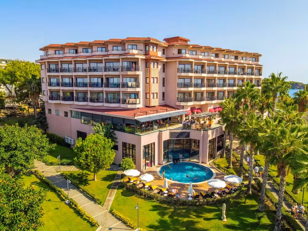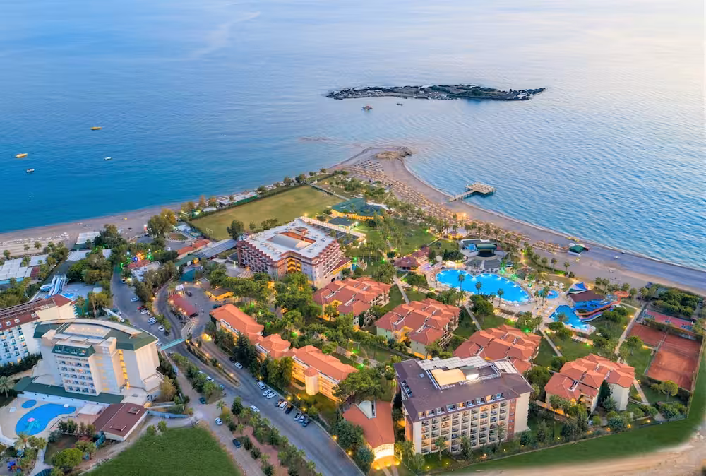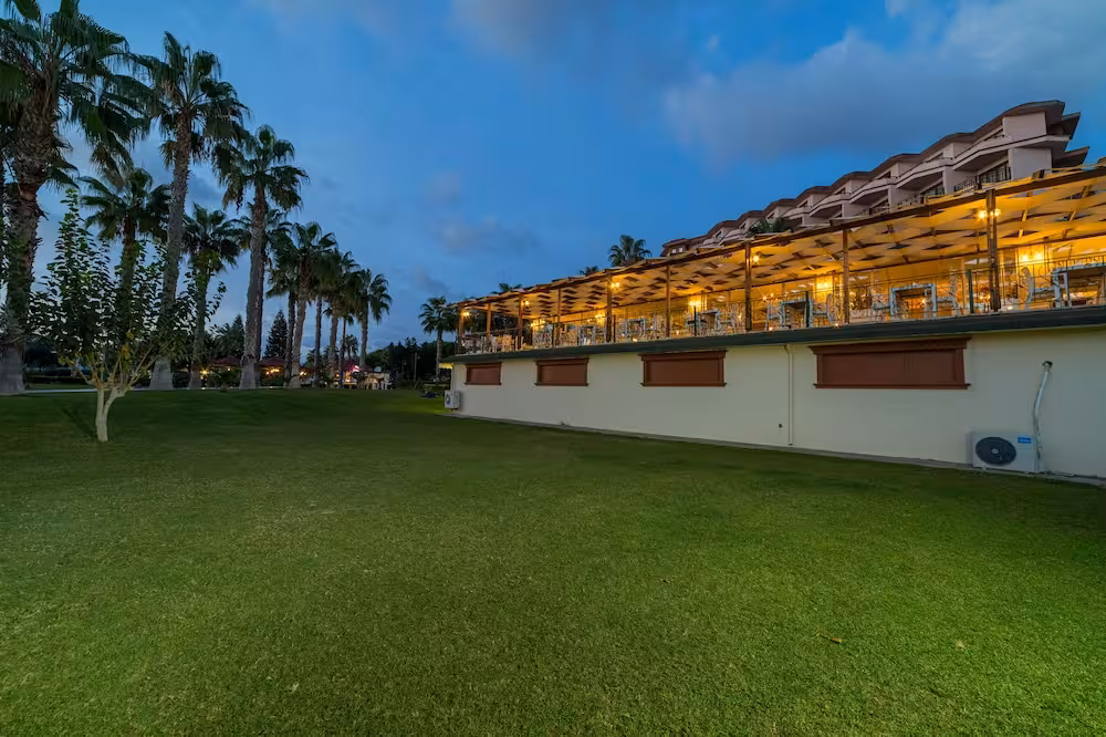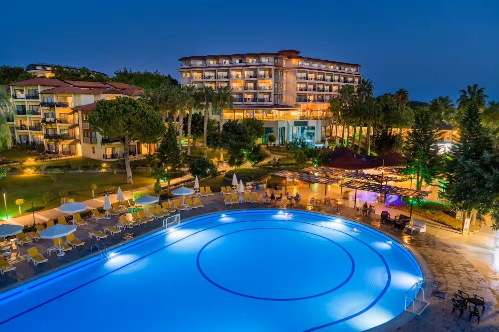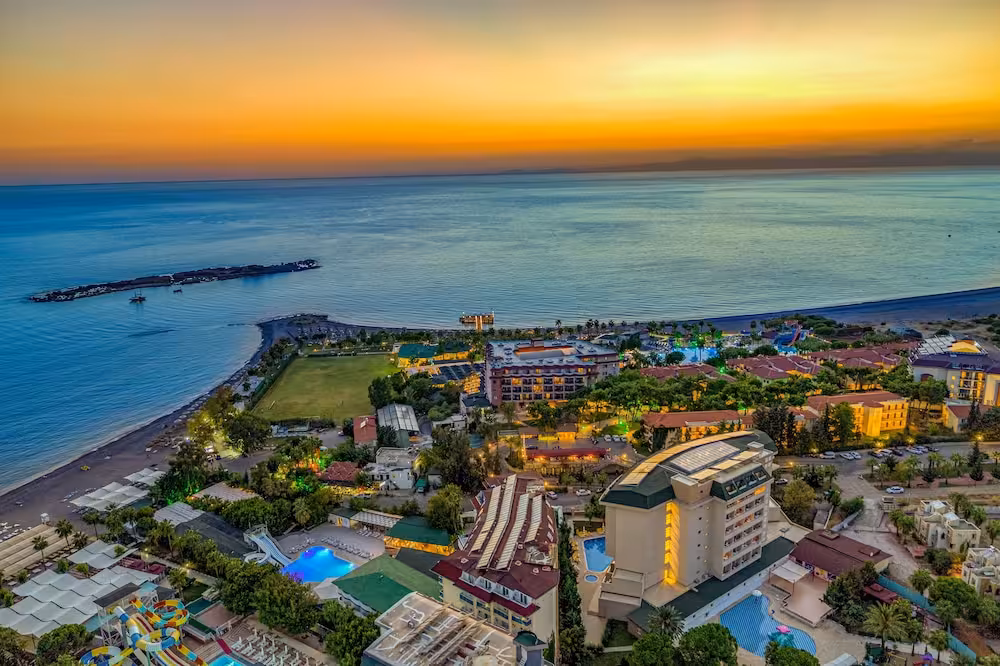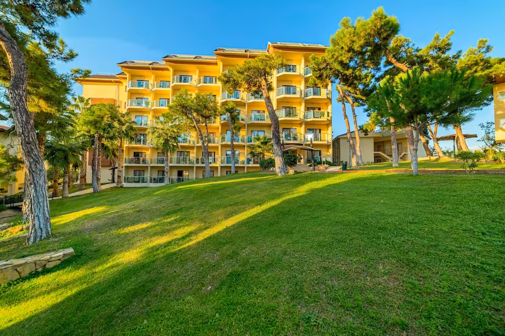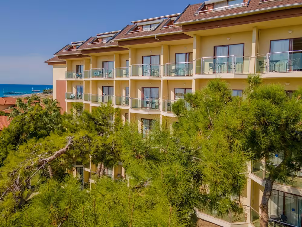 This hotel enjoys a peaceful location in a pine forest. The hotel's sand/pebble beach is located right by the hotel, between 2 bays. The centre of Alanya is easily reached with a shuttle bus for an added fee, around 30 km away.