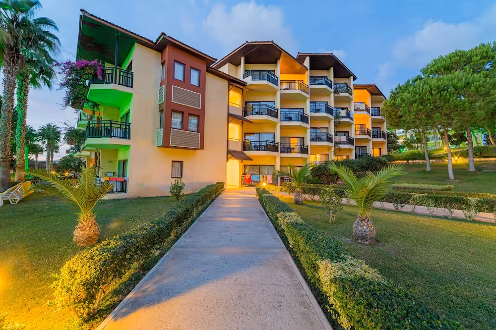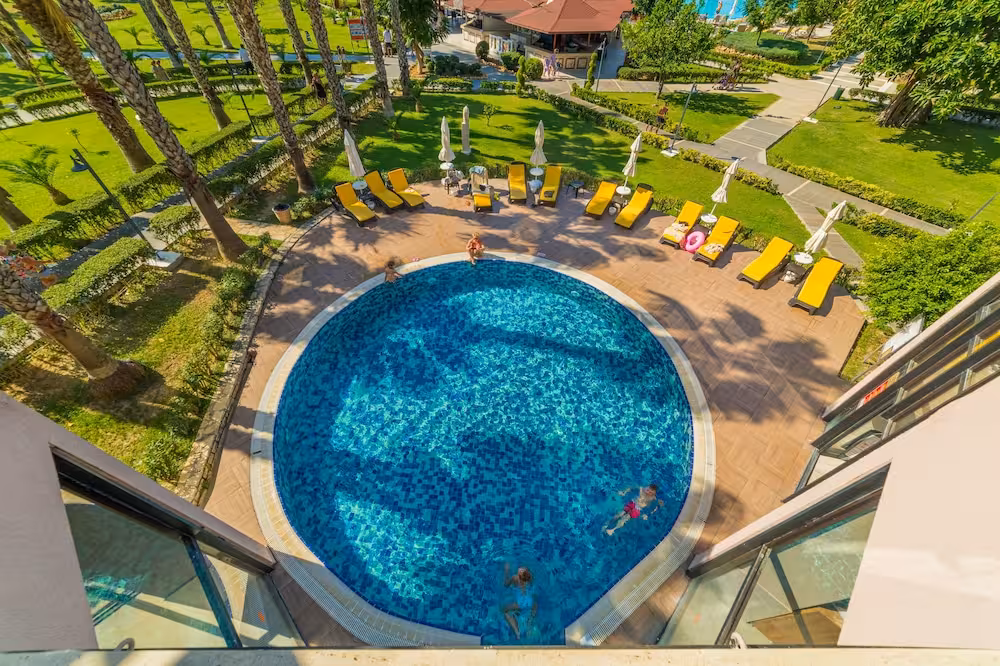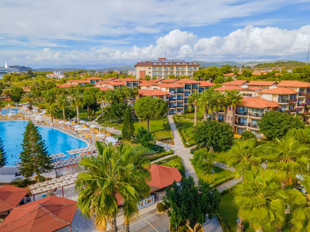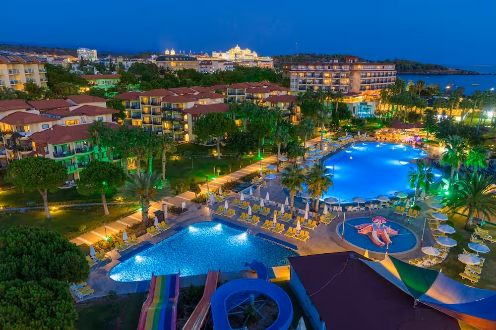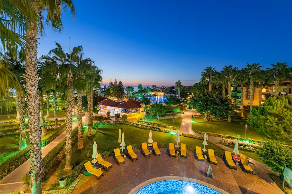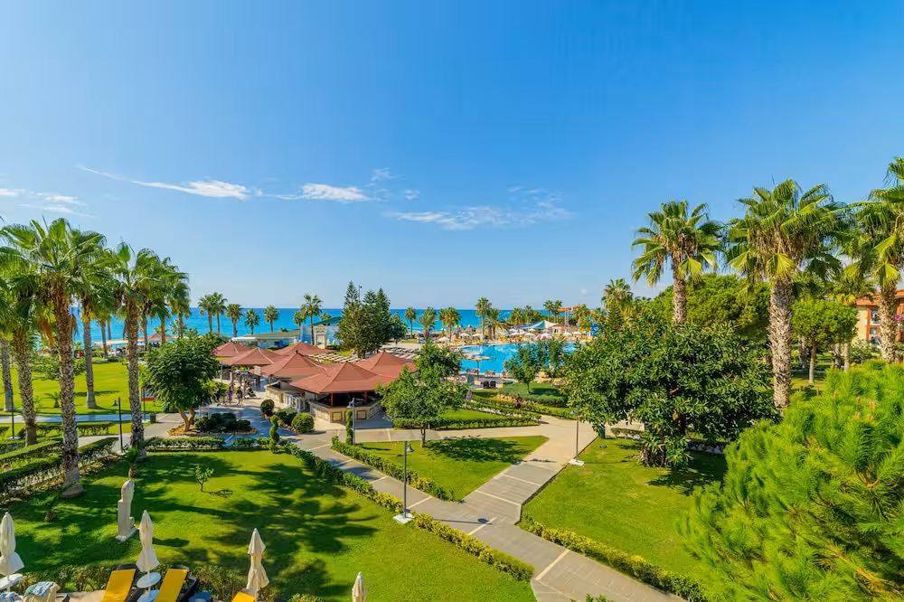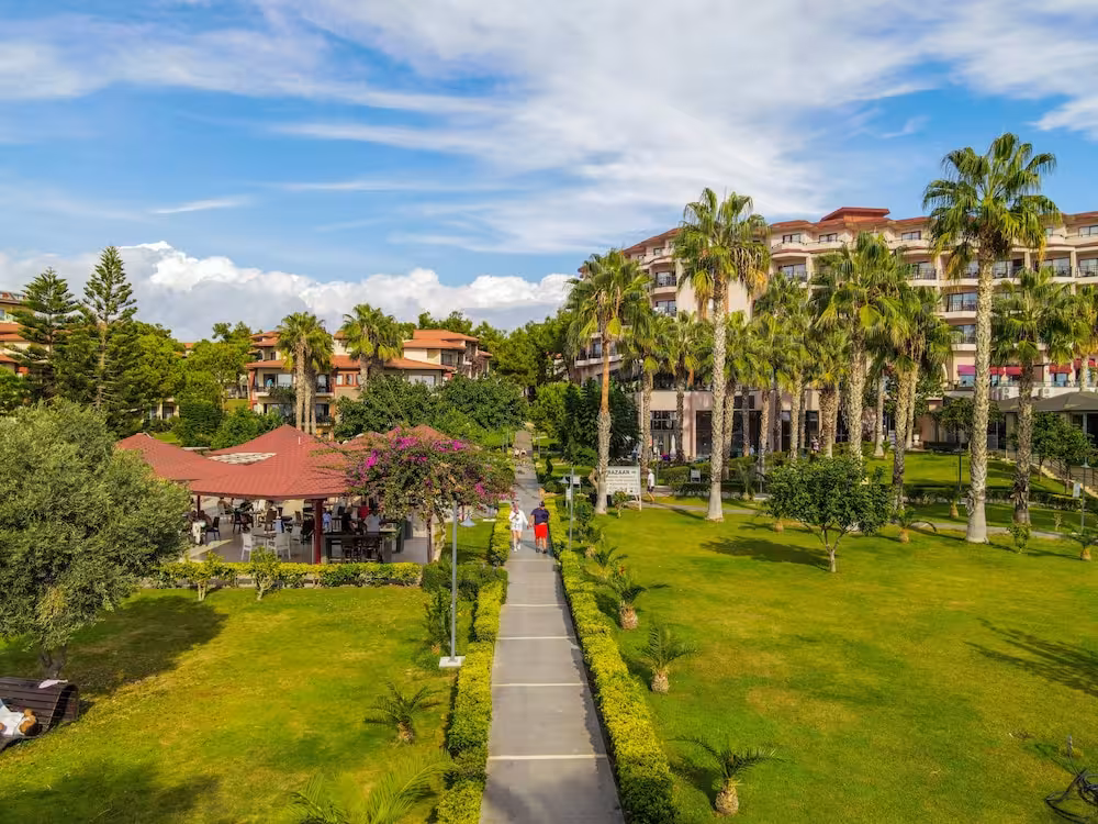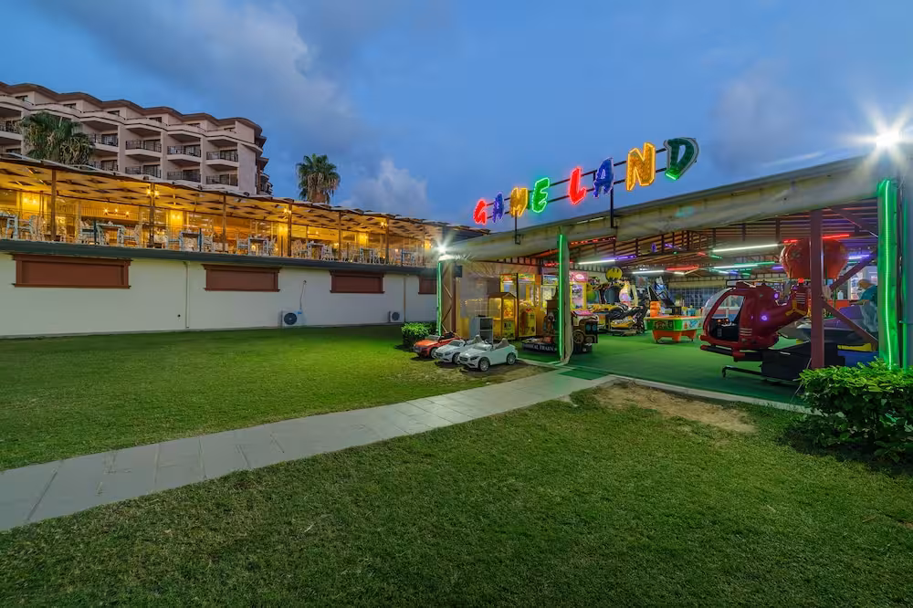 This hotel enjoys a peaceful location in a pine forest. The hotel's sand/pebble beach is located right by the hotel, between 2 bays. The centre of Alanya is easily reached with a shuttle bus for an added fee, around 30 km away.