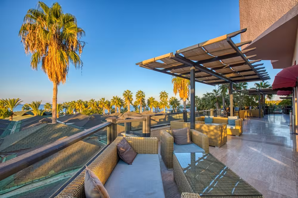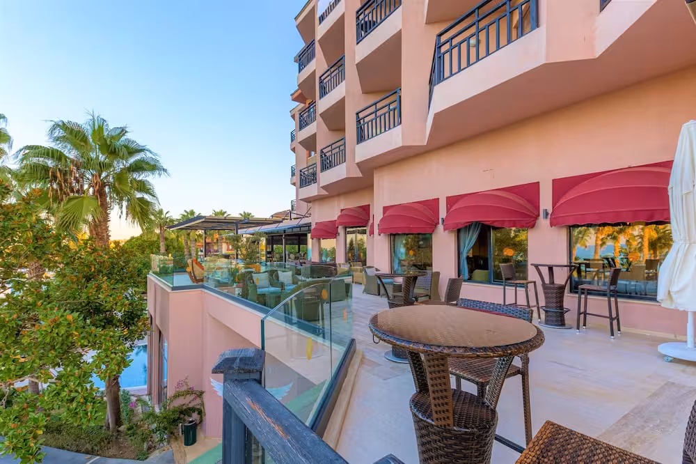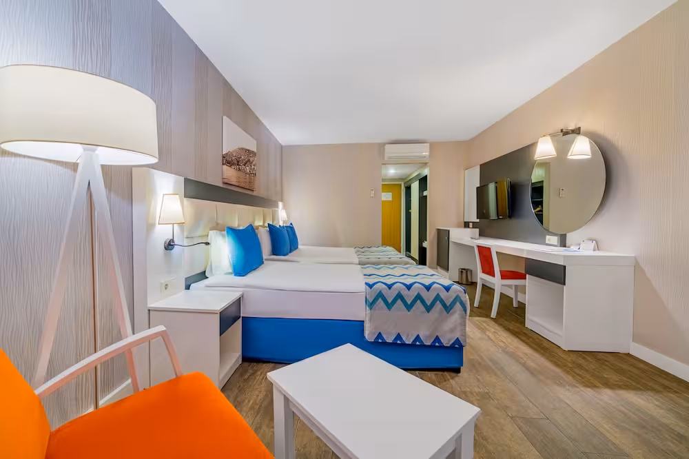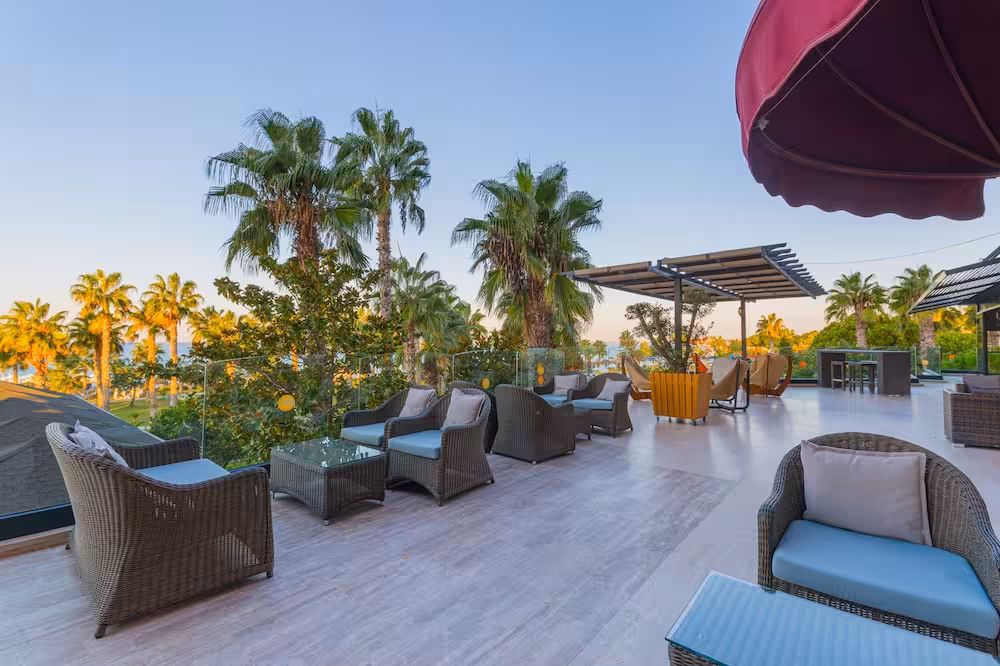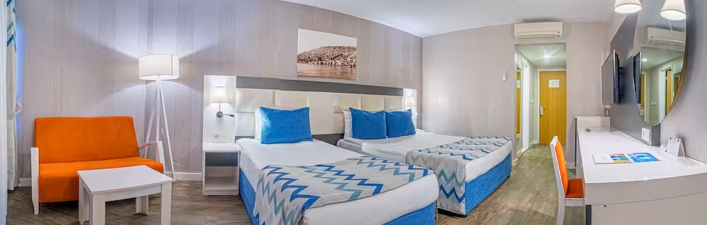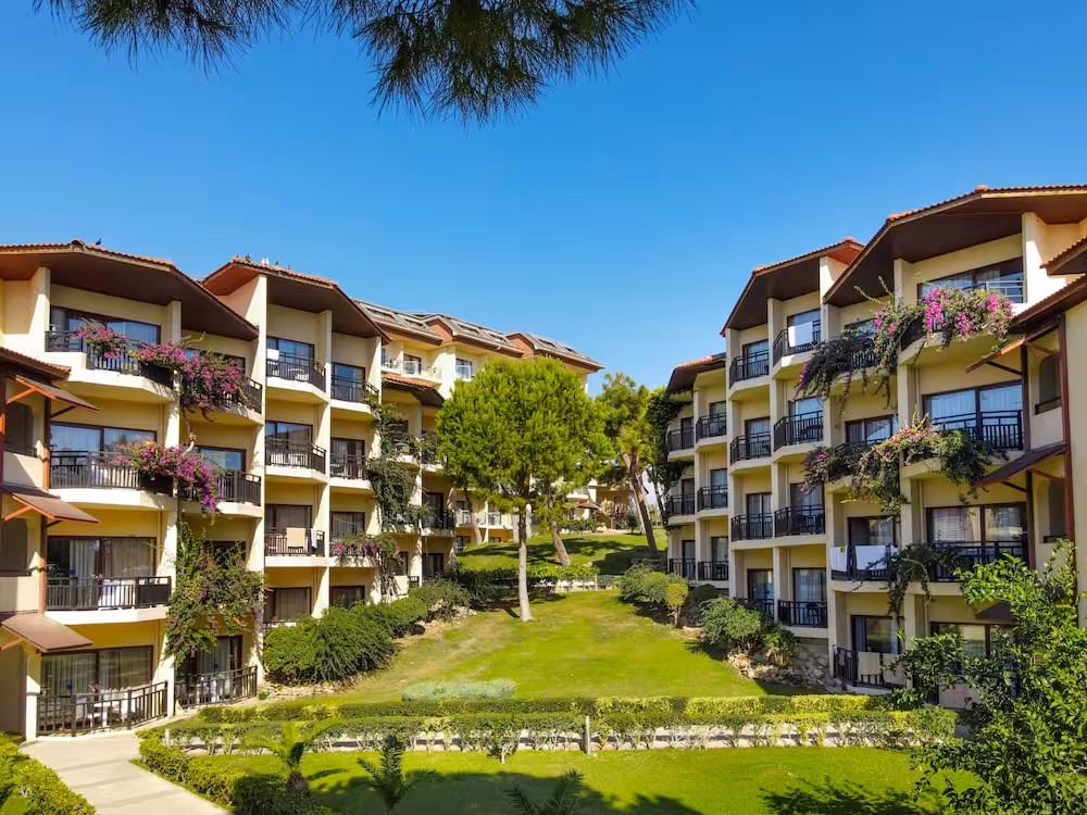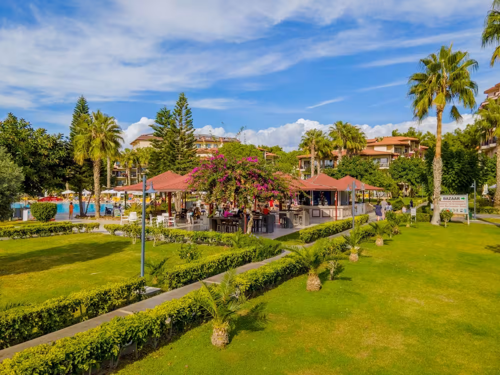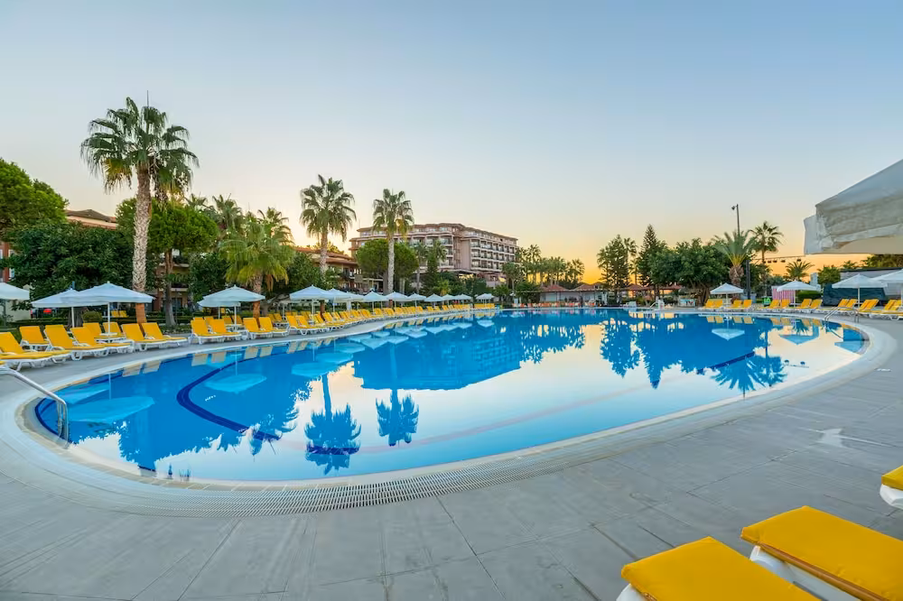 This hotel enjoys a peaceful location in a pine forest. The hotel's sand/pebble beach is located right by the hotel, between 2 bays. The centre of Alanya is easily reached with a shuttle bus for an added fee, around 30 km away.