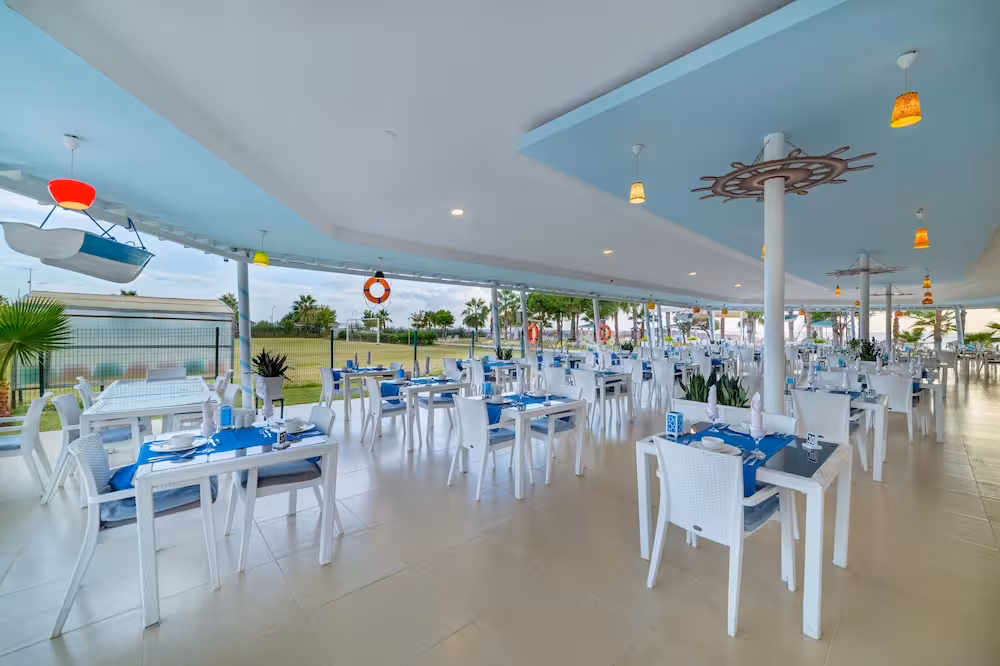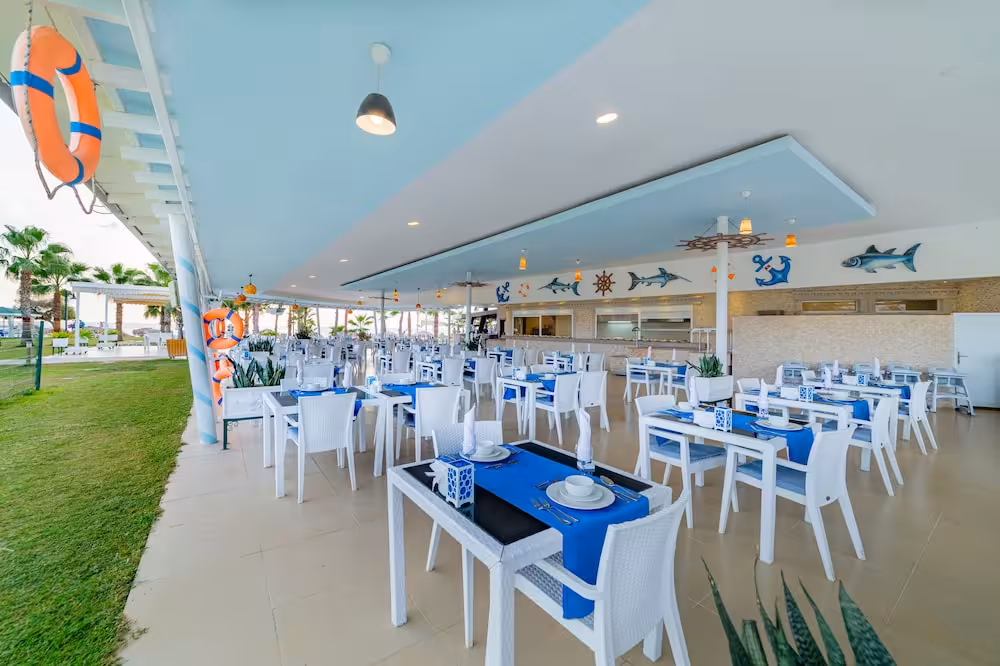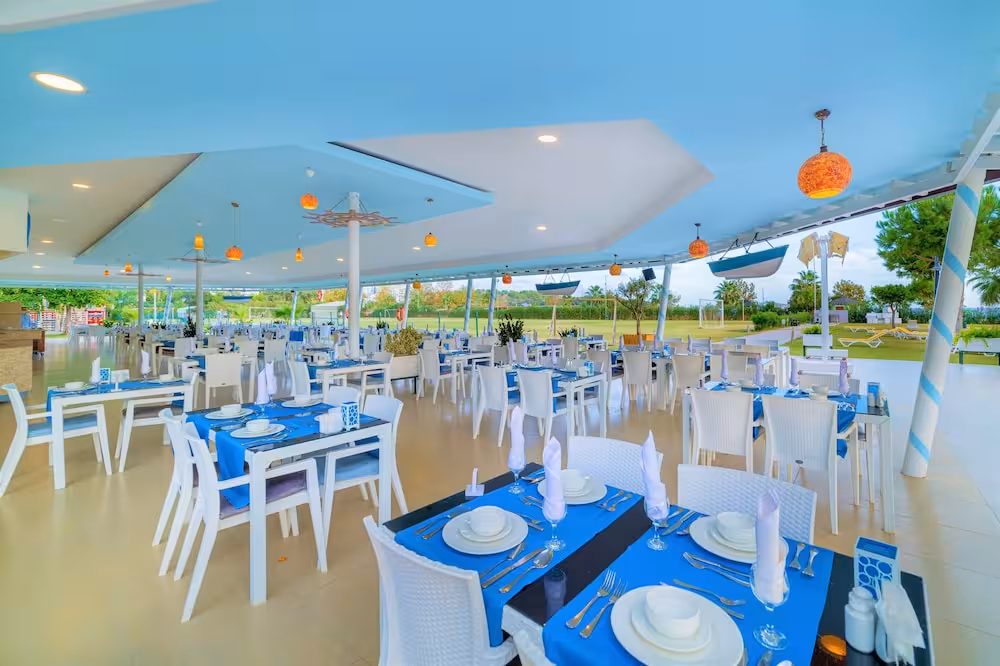 Guests can work out or just relax in the outdoor and indoor pools. Kids can splash about in a special swimming area just for them. The pool area also includes a hot tub, a waterslide and a pool bar. A terrace with sun loungers and parasols is available. The wide range of activities offered at the complex ensures that there is something new to do every day, including tennis, bocce, beach volleyball, crazy golf, archery and fishing. Guests can take part in a comprehensive water sports programme, which includes water skiing and canoeing, with windsurfing, jet skiing, banana boat rides, sailing, catamaraning, snorkelling and diving available for a fee. The hotel offers numerous indoor sports, including a gym, table tennis, badminton, darts and aerobics or, for a fee, billiards. There is a wellness area with a spa, a hammam and a beauty salon and, for an additional fee, a sauna, a steam bath and massage treatments. Leisure facilities include a kids' club, live music and a dance club.