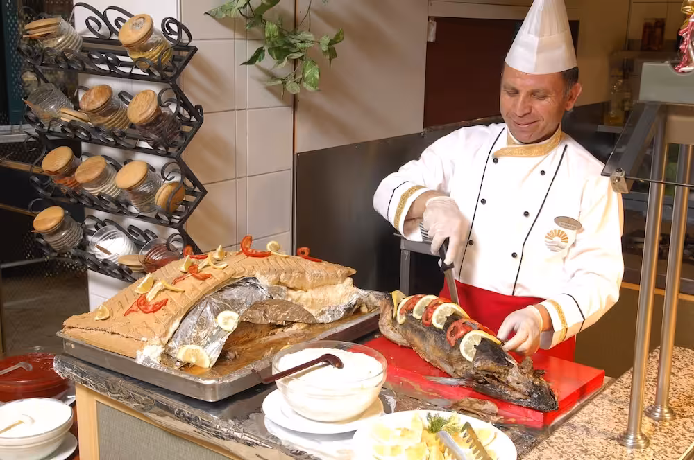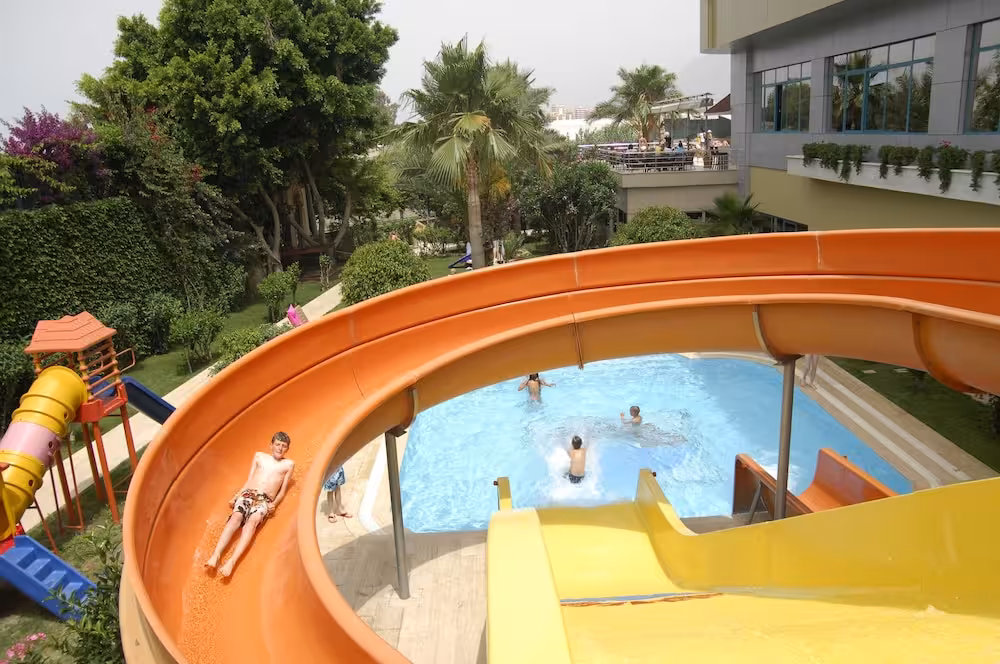 There are indoor and outdoor pools and a children's swimming area. Pure relaxation in the hot tub, fun on the waterslide and refreshing drinks at the pool bar – guests will experience just how rich and varied a day in the water can be. A short break or an entire afternoon on the sun terrace, which features sun loungers and parasols, is time well spent. The hotel offers outdoor sports, including tennis, beach volleyball, volleyball and basketball. Water sports available at the hotel include jet skiing, paddle boating, banana boat rides and canoeing. Guests can enjoy a wide range of indoor sports, including a gym, table tennis, billiards, darts, callisthenics and aerobics. Various wellness options are available at the hotel, including a spa, a sauna, a hammam, a beauty salon and massage treatments. Leisure facilities include an entertainment programme, a kids' club, a dance club and a nightclub.
