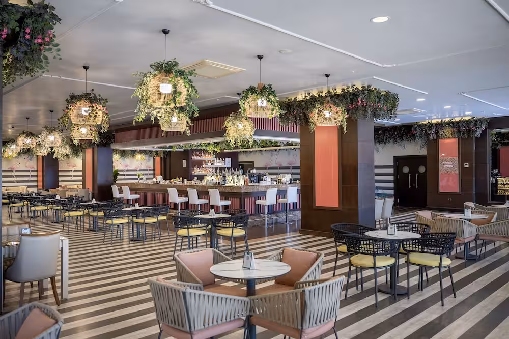 Dining facilities include a dining room, a breakfast room, a café, a bar and a lobby bar. The non-smoking restaurant provides high chairs for children. All-inclusive can be booked. Diet meals, gluten-free meals and children's meals can be prepared on request. All-inclusive holidaymakers enjoy special extras, including snacks. For guests, a selection of alcoholic and non-alcoholic beverages as well as international brands are included.
