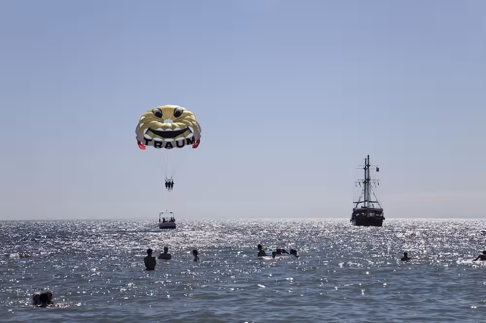 The pool area, which includes indoor pools as well as outdoor pools, is the perfect to relax after a full and active day. There are also 2 pools just for kids. A waterslide and a refreshing drink at the poolside snack bar offer the perfect way to unwind. Parasols and comfortable sun loungers are available on the sun terrace. Water sports on offer include water aerobics or, for a fee, jet skiing and parasailing. A wide range of indoor sporting activities are also offered, for example a gym, table tennis and darts or, for a fee, billiards and table football. There is a wellness area with a spa, a sauna and a hammam. Subject to charge: massage treatments. A kids' club and live music round out the entertainment options.