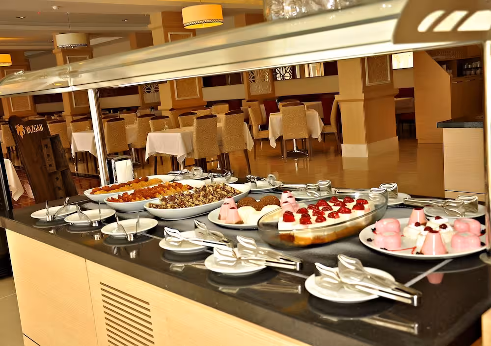 The dining area includes a restaurant (with high chairs) and a lobby bar. Refreshing drinks at the beach bar are a perfect way to enjoy warm weather. All-inclusive can be booked. A generous and varied breakfast buffet (also for early birds and late risers) provides many delicious reasons to rise and shine. At lunch and dinner, guests serve themselves at the buffet. The hotel also offers snacks. For guests, alcoholic and non-alcoholic drinks are included.