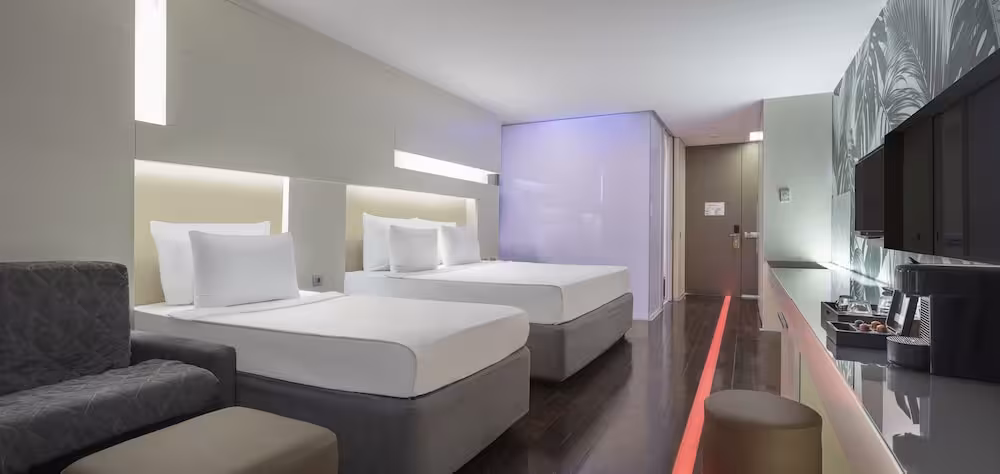 Air conditioning ensures that rooms maintain comfortable temperatures. A balcony is included as standard in some rooms. For young travellers, children's beds can be provided. A safe and a minibar are also available. Extra comforts include a tea/coffee station. Other features include a direct dial telephone, a flatscreen television and WiFi (no extra charge). Slippers, daily paper and pillow menu provide guests of the hotel with additional comfort. Bathrooms are equipped with a shower. A hairdryer, a vanity mirror, bathrobes and a telephone are provided. For extra comfort in the bathrooms, guests are offered cosmetic products. Family rooms are available for parents with children.
