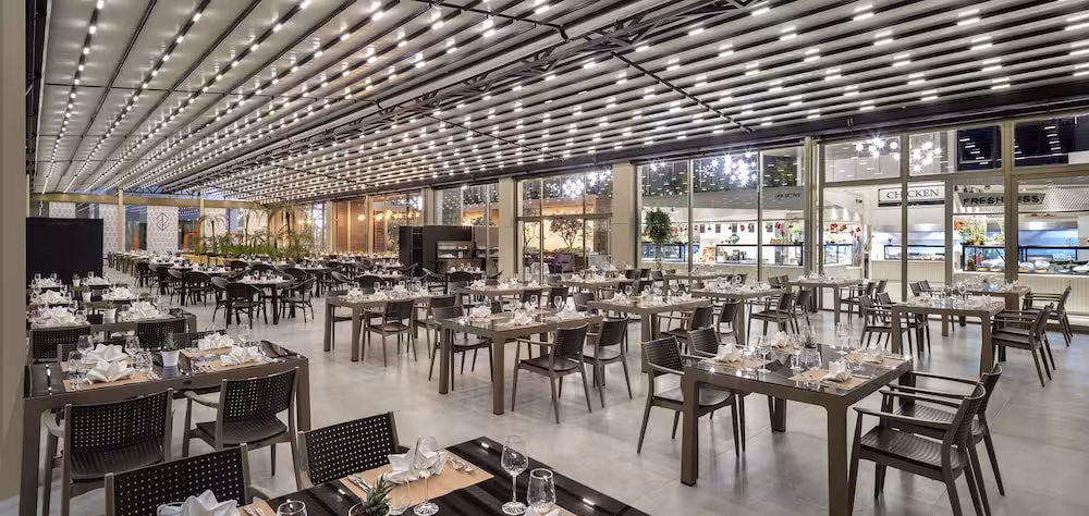 Dining facilities include a café, a bar and a pub. Guests can indulge their palates at 7 restaurants (non-smoking, a buffet and à la carte). Refreshing drinks at the beach bar are a perfect way to enjoy warm weather. Catering options include bed and breakfast and half board. A breakfast for early birds and late risers, lunch and dinner tempt guests with a wide range of dishes. Diet meals, gluten-free meals, children's meals and organic food can be prepared on request. The hotel also offers snacks. The show cooking is a particularly special attraction. The hotel offers a selection of alcoholic and non-alcoholic beverages.