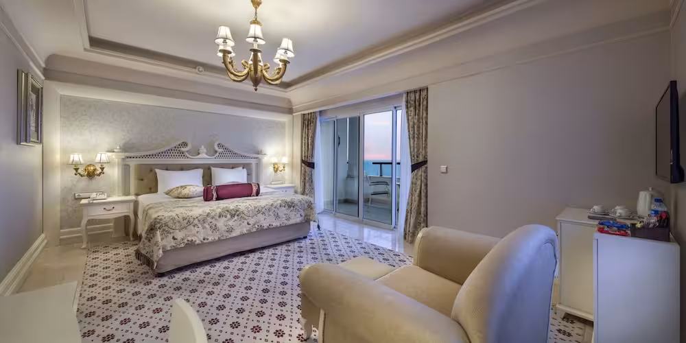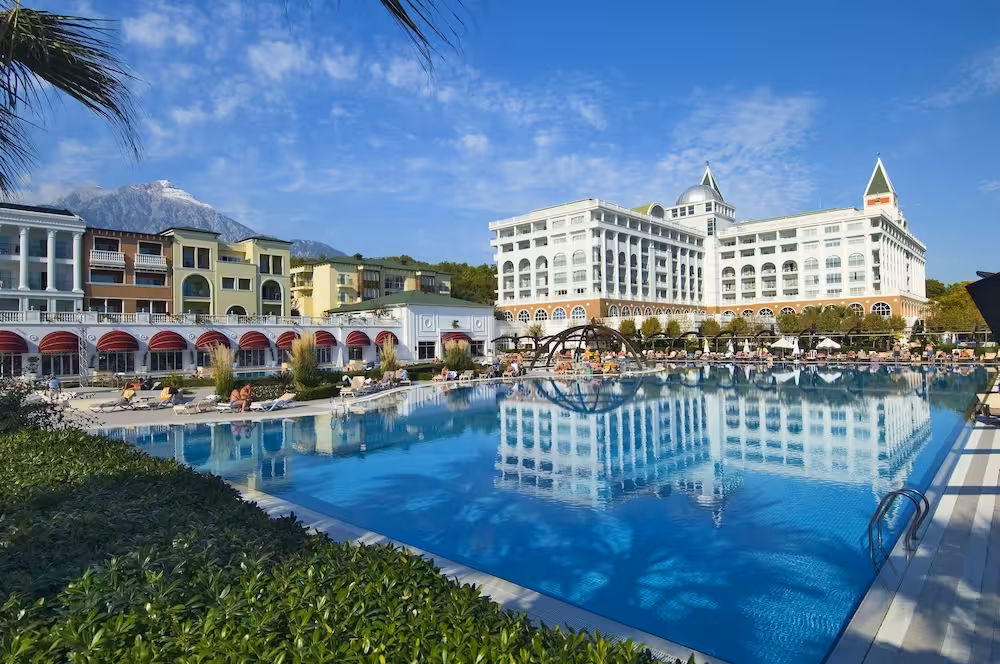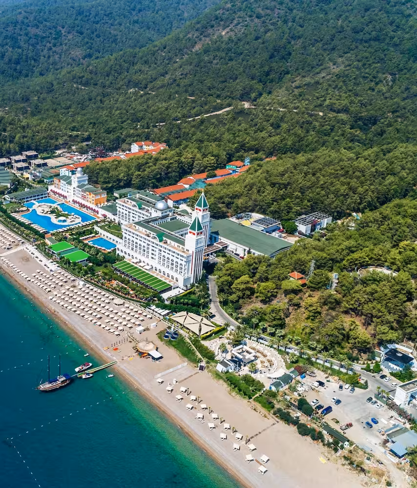 This hotel enjoys an idyllic location amidst the pine trees where the Mediterranean and Taurus Mountains meet. Affording its own cove with sand/ pebble beach, this hotel lies just 2 km from Tekirova where a selection of restaurants, bars, nightclubs and shops are to be found. Kemer is 50 km from the hotel and it is around 75 km to Antalya airport.