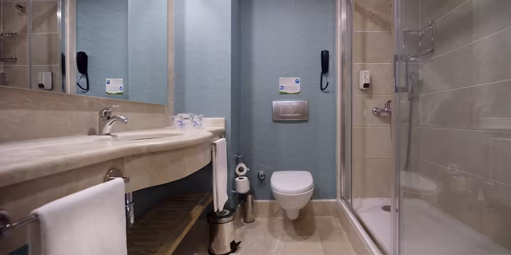 Rooms are equipped with air conditioning and individually adjustable heating. Guests can enjoy the sea view from a balcony or terrace. All rooms are carpeted and include a double bed. Separate bedrooms are available. Extra beds can be requested. A safe and a minibar are also available. Additional features include a refrigerator, a mini fridge and a tea/coffee station. A direct dial telephone, a television with satellite/cable channels and WiFi (for a fee) are provided as well. Bathrooms are equipped with a shower and a hairdryer. For extra comfort in the bathrooms, guests are offered cosmetic products. Guests can also book wheelchair-friendly rooms with wheelchair-accessible bathrooms. The hotel has non-smoking rooms and smoking rooms.