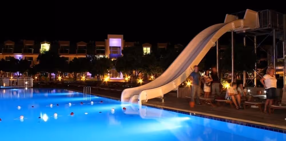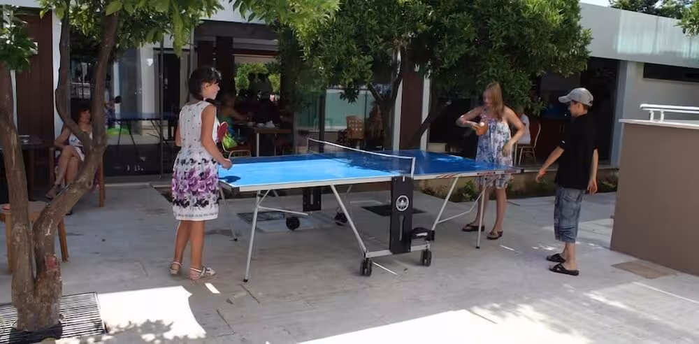While the adults swim a few laps in the outdoor pool, children can enjoy splashing about in their own swimming area. A waterslide provides fun for all ages. Comfortable sun loungers are available on the terrace. With diving and water aerobics available, the hotel also caters to water sports enthusiasts. Sports enthusiasts are also offered a wide range of indoor activities, including table tennis, darts, yoga and aerobics. After a long day, guests can recharge in the wellness area, which offers a hammam or, for a fee, a sauna and massage treatments. Additional leisure activities include an entertainment programme, a kids' club, a kids' disco and live music.