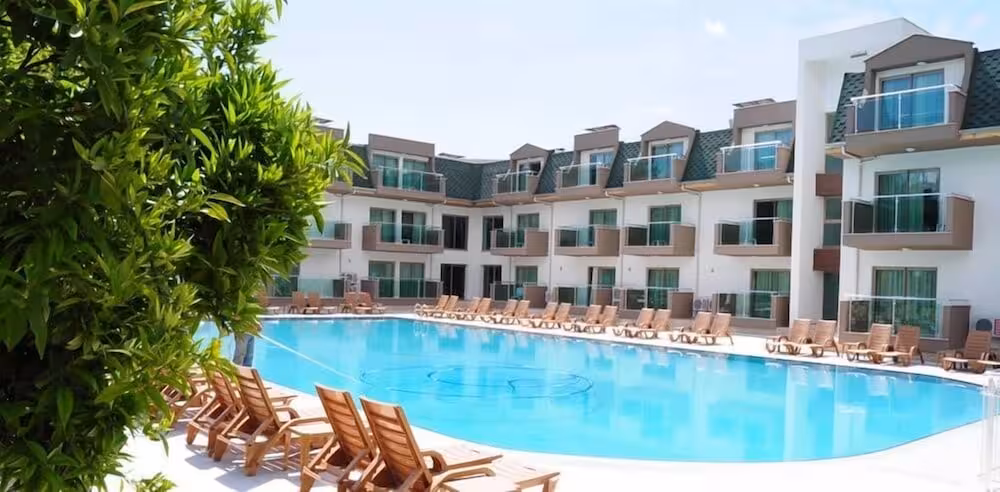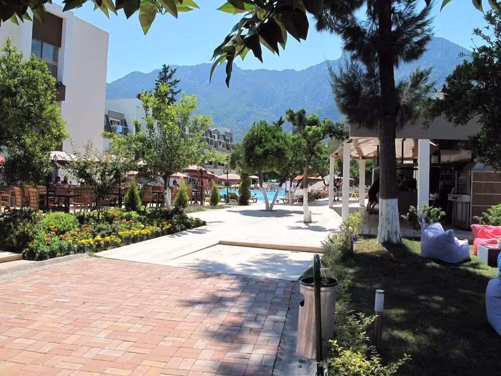 The hotel is situated between the magnificent Taurus Mountains and the crystal clear blue water of the Mediterranean, 700 m from the Göynük Coast, and takes centre stage with its wonderful landscape and its warm, unique, architecture. It offers guests individual, high-quality service, with the concept “Happiness is included too”. The hotel's philosophy is to leave no wish of its guests unfulfilled, which is why it provides excellent service and traditional Turkish hospitality, as well as an “All-inclusive+” concept from 10:30 am until 10 pm, offering rich and delicious food and beverages for an unforgettable holiday. In addition, the hotel's Olympic pool and waterslides make it a holiday paradise for families.
