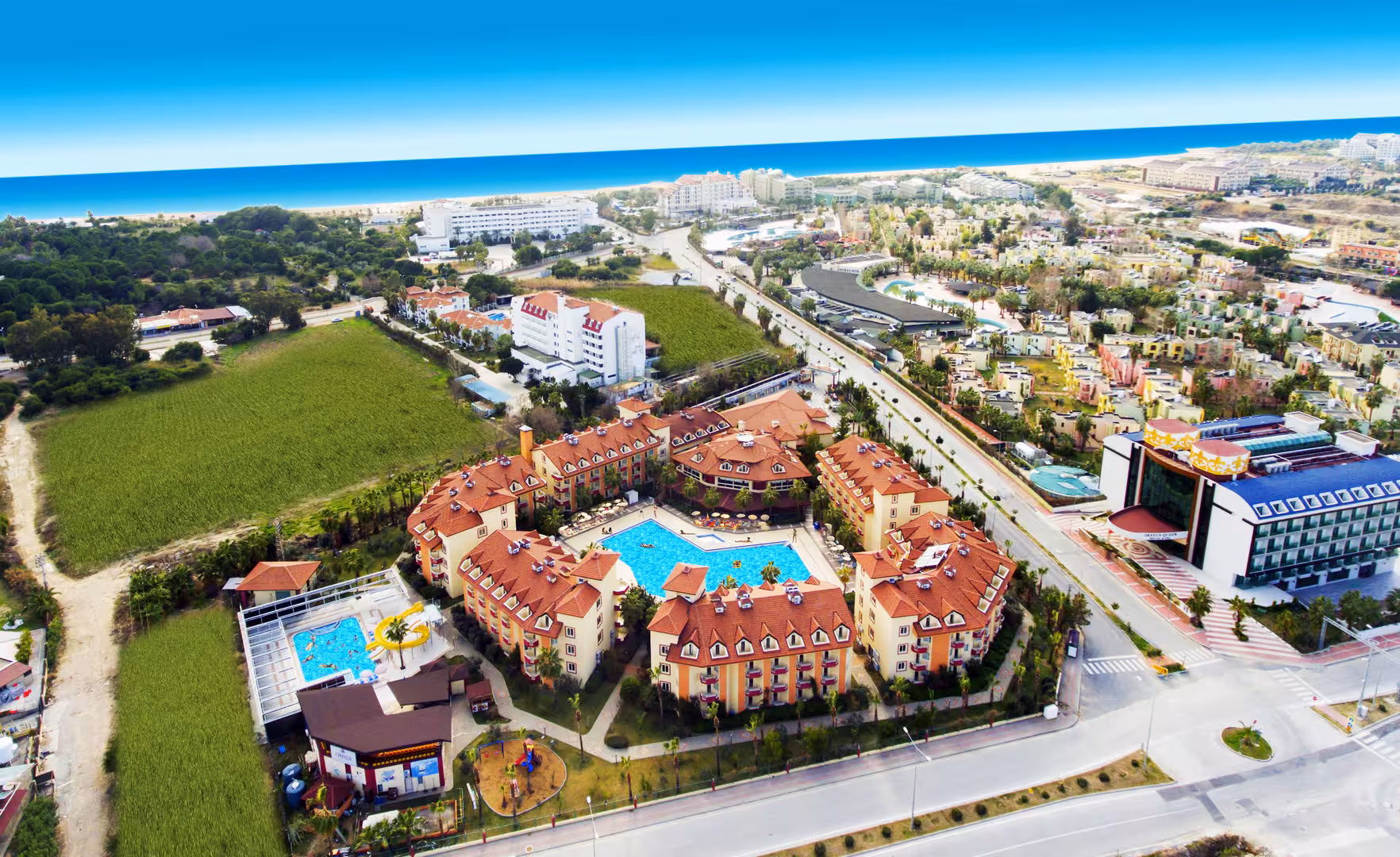 The hotel is located just 300 m away from the beach and around 55 km away from Antalya Airport, while the centre of Manavgat is around 15 km away. Shops, bars, restaurants and much more can all be found in the tourist centre of Side Colakliu.