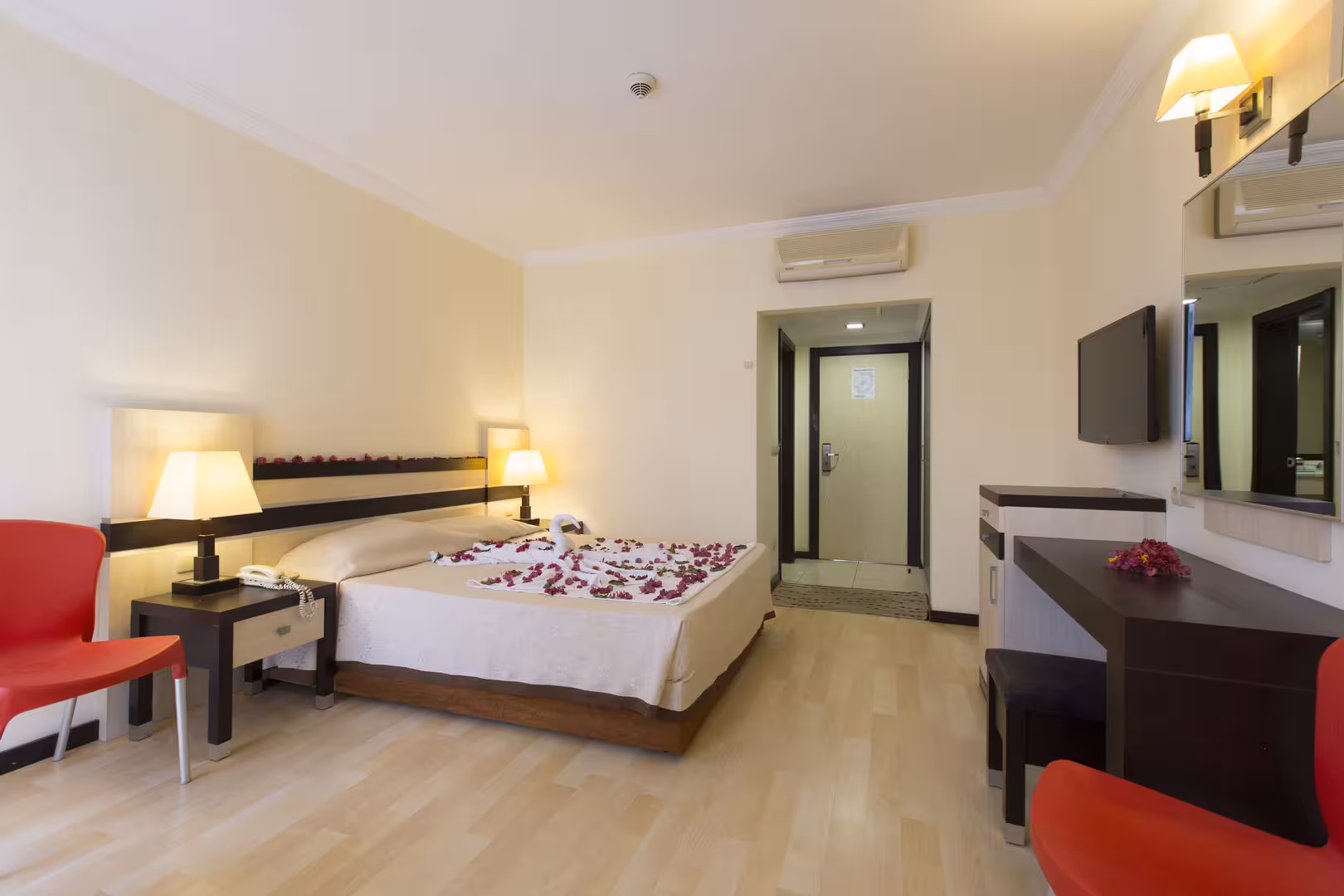 Rooms are equipped with air conditioning and individually adjustable heating. Some rooms include a balcony. Guests are sure to get a good night's sleep in the double bed. Guests can also book separate bedrooms. Children's beds can be requested for younger guests. A safe and a minibar are also available. Guests will also find a mini fridge included among the standard features. Other features include a direct dial telephone and a television with satellite/cable channels. Bathrooms are equipped with a shower and a bathtub, as well as a hairdryer. Wheelchair-friendly rooms with wheelchair-accessible bathrooms are also available. Family rooms are available for parents with children.