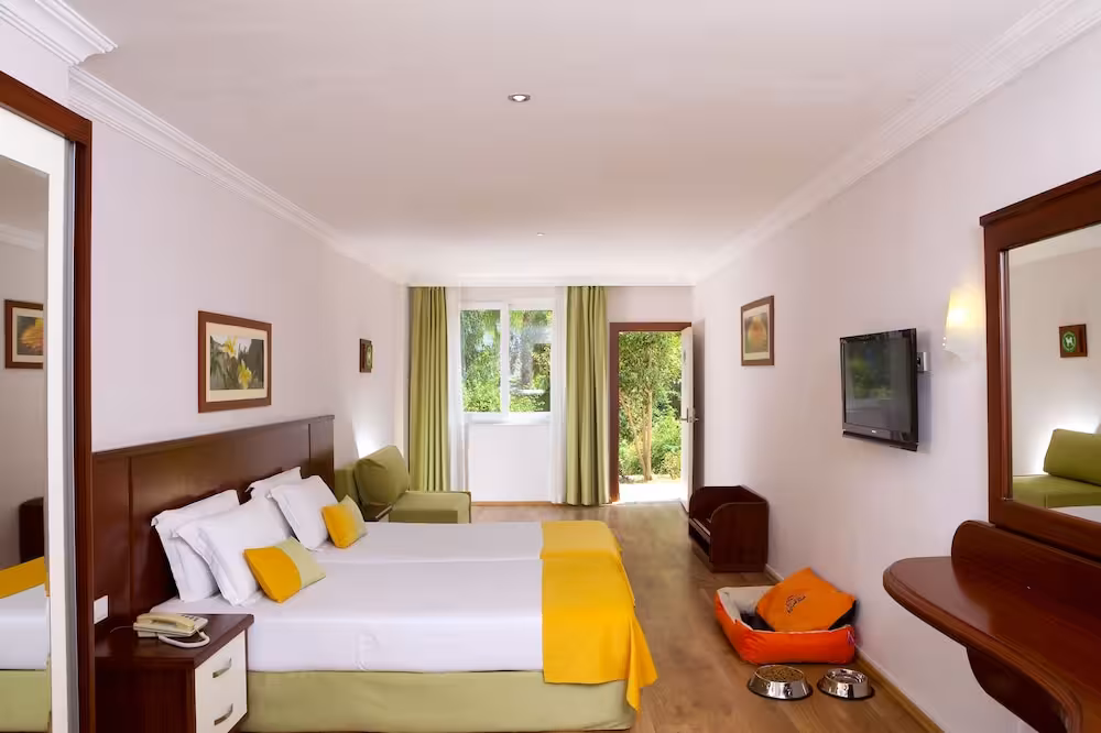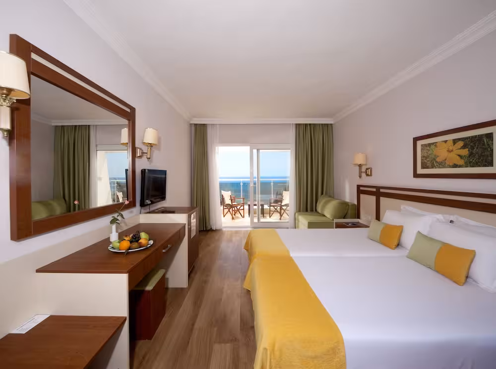 Air conditioning ensures that rooms maintain comfortable temperatures. In most units, guests can enjoy a view of the sea from a balcony or terrace. Children's beds can be requested for younger guests. A safe and a minibar are also available. Guests will also find a tea/coffee station included among the standard features. Other features include a telephone and a flatscreen television with satellite channels. Slippers are included. A hairdryer and bathrobes are available in the bathrooms, which are equipped with a shower and a whirlpool bath. Wheelchair-friendly rooms with wheelchair-accessible bathrooms are also available. The resort has family rooms and non-smoking rooms.