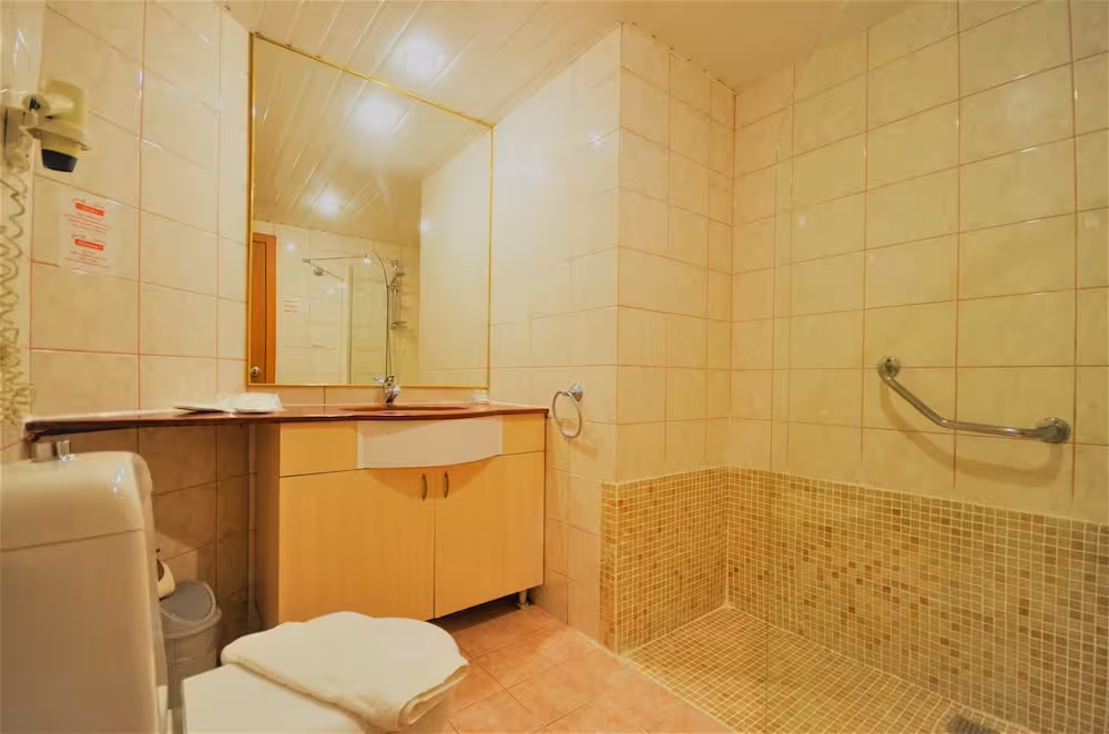 Air conditioning and central heating ensure that rooms maintain comfortable temperatures. Guests can enjoy the mountain view from a balcony or terrace. Rooms have a double bed, a queen-size bed or a sofa bed. Separate bedrooms are available. Extra beds can be requested. A safe provides secure storage for guests' personal property. The kitchenette comes with a refrigerator and a tea/coffee station. A trouser press is provided for guests' convenience. A direct dial telephone, a TV and WiFi (no extra charge) are provided as well. Bathrooms are equipped with a shower and a bathtub, as well as a hairdryer. Wheelchair-accessible rooms can also be booked. The hotel has family rooms and non-smoking rooms.