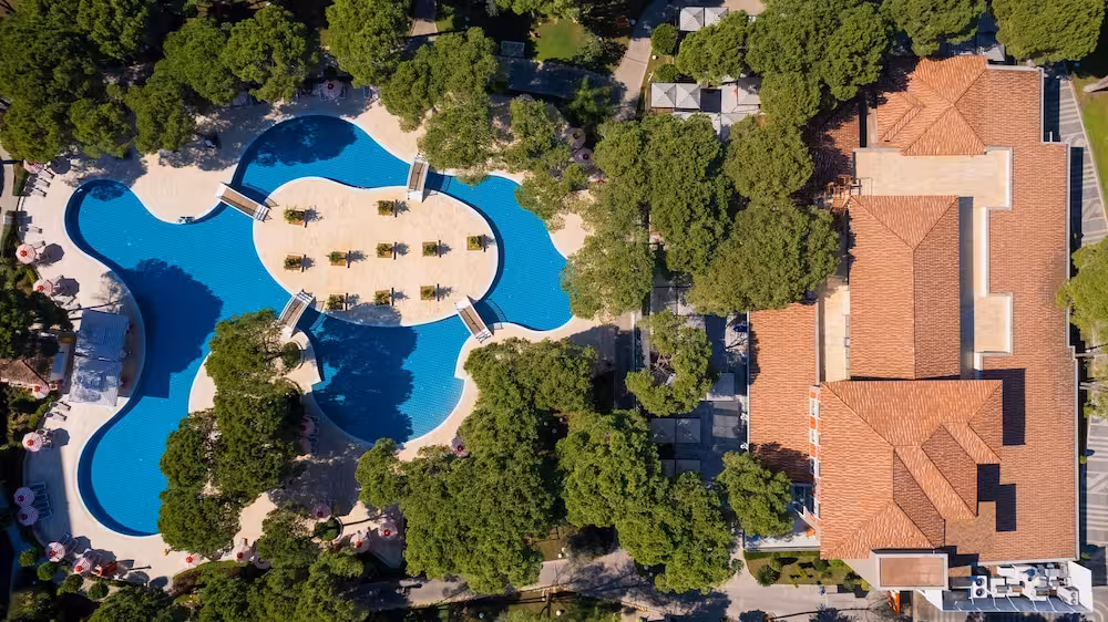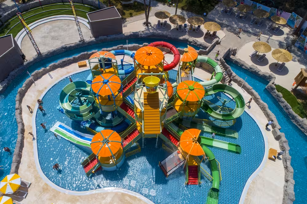 Plenty of active recreation awaits guests in the pool area's 18 outdoorpools. No matter the weather, swimming is always a possible in the indoor pool. There is also a special swimming area just for kids. The pool area also includes a hot tub (no extra charge), a waterslide and a pool bar. Parasols and comfortable sun loungers are available on the sun terrace. The resort offers outdoor sports, including tennis, crazy golf, golf, archery and fishing. With windsurfing, canoeing, sailing, kayaking and aquafit available, fans of water sports will have plenty to choose from. Guests can enjoy a wide range of indoor sports, including a gym, table tennis, badminton, billiards and yoga. There is a wellness area with a sauna, a steam bath, a hammam, massage treatments and a solarium. Subject to charge: a spa. Leisure facilities include a kids' club, a kids' disco, live music and a dance club.