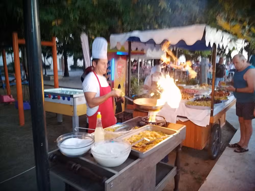 Dining facilities include a dining room, a café and a bar. Guests can enjoy the culinary delights of the non-smoking, air-conditioned restaurant, which provides high chairs for children. Refreshing drinks at the beach bar are a perfect way to enjoy warm weather. All-inclusive can be booked. A delicious and varied buffet awaits guests at breakfast, lunch and dinner. Staff are also happy to provide children's meals. The hotel also offers snacks. For guests, alcoholic and non-alcoholic drinks are included.