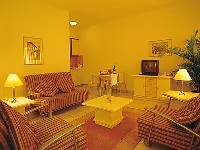 88 apartments are available. Check-in and check-out are possible at any time at the 24-hour reception desk. The apartment hotel provides a safe, a currency exchange service, a playroom, a babysitting service, medical assistance and a laundry service. Wireless internet access (for a fee) is provided in public areas. Everyday necessities can be purchased at the supermarket. The grounds of the hotel feature a playground and a lovely garden. Guests arriving by car can park their vehicles in the car park. Services include a hotel shuttle bus.