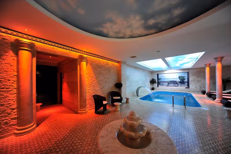 The pool complex guarantees comfortable swimming with its soothing salt water and indoor and outdoor pools. A terrace with sun loungers and parasols is available. The hot tub in the pool area promises pure relaxation. For those who wish to stay active while on holiday, the hotel offers cycling/mountain biking. Water sports enthusiasts can enjoy jet skiing, banana boat rides and diving. Guests can enjoy a wide range of indoor sports, including a gym, table tennis, callisthenics and aerobics. Various wellness options are available at the hotel, including a spa, a sauna, a steam bath, a hammam and massage treatments.
