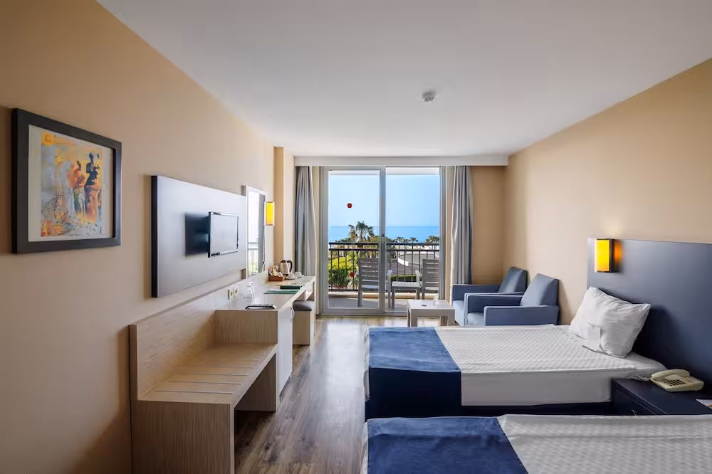 This hotel is located on the beach in the tourist centre of Kizilagac. Countless shops, restaurants, bars and nightclubs are to be found in the vicinity (500 m). Side lies around 18 km away, whilst the Manavgat waterfalls and Aspendos are some 25 km from the hotel. Antalya Airport is roughly 75 km from the hotel.