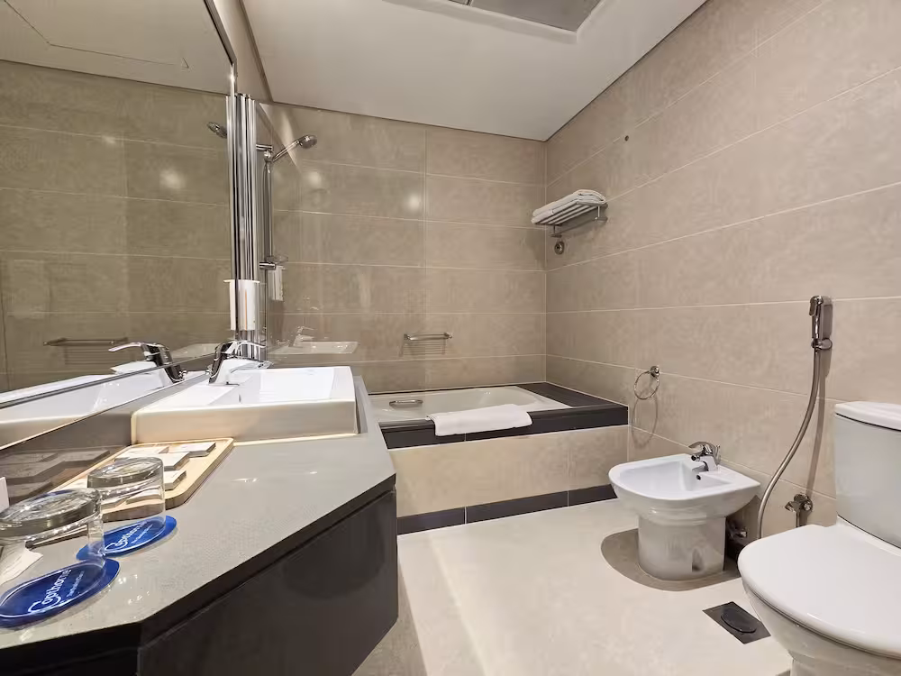The accomodation was too good and so convenient on mall, Nice transportation like taxi,train, facilities for going many places in dubai. The Room and wash room was too clean and nice expecially...