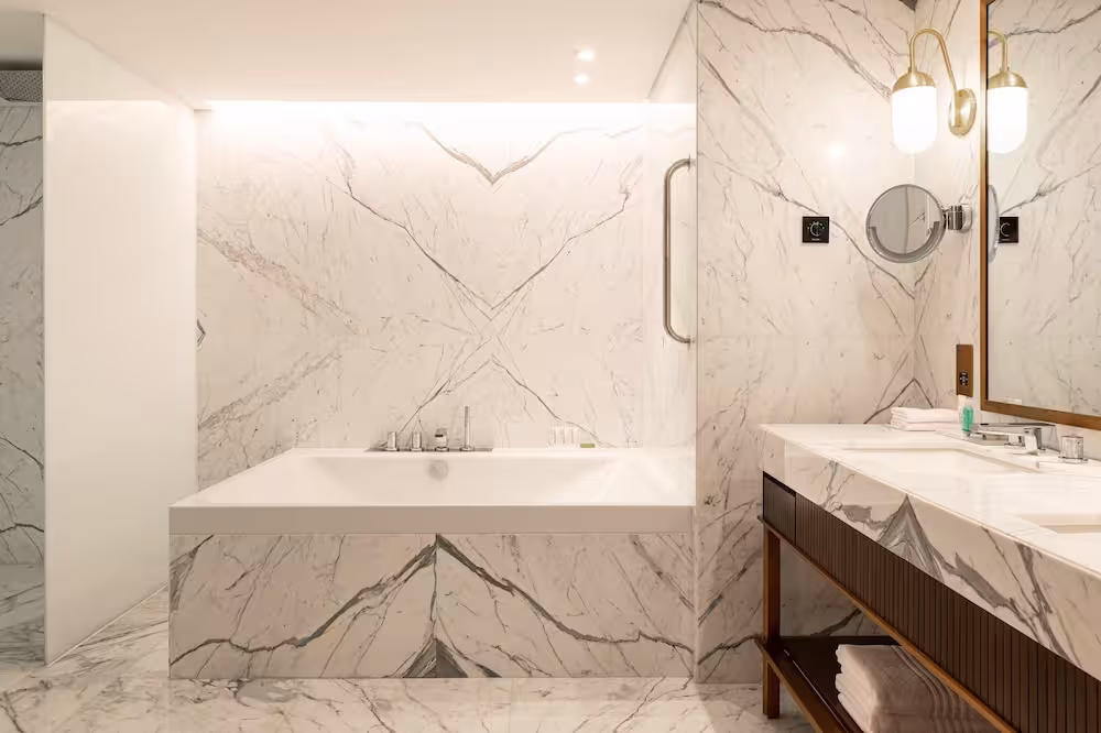 Air conditioning and central heating ensure that rooms maintain comfortable temperatures. A balcony is included as standard in some rooms. Children's beds can be requested for younger guests. A safe, a minibar and a desk are also available. Additional features include a mini fridge and a tea/coffee station. There is also an ironing set and a trouser press. Other features include a telephone, a television with satellite/cable channels, a CD player, an alarm clock and WiFi (no extra charge). A turndown service provides guests with additional comfort in the evening hours. Slippers and the daily newspaper provide additional comfort in the rooms. The bathrooms have a shower, a bathtub and a bidet. A hairdryer and bathrobes are provided. Guests can also book wheelchair-friendly rooms with wheelchair-accessible bathrooms. The complex has family rooms and non-smoking rooms.