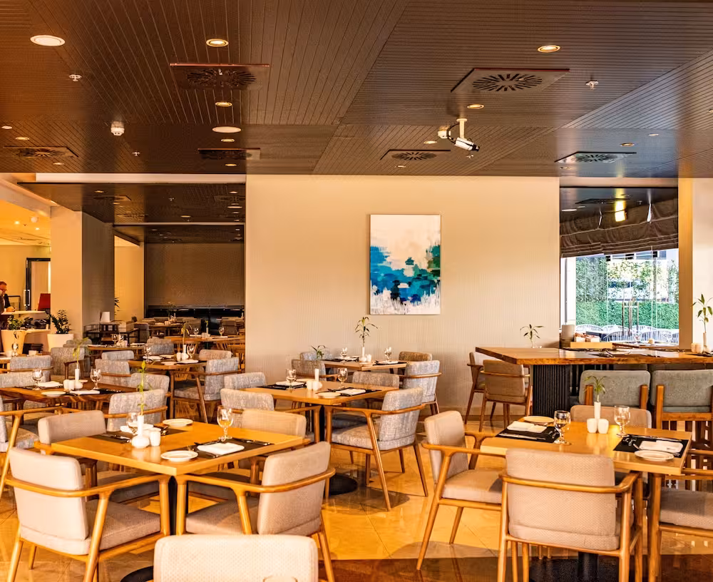 Dining facilities include a restaurant, a café and a bar. A continental breakfast buffet and lunch offer culinary delights every day. Diet meals and children's meals can be prepared on request. The hotel also offers special catering options.