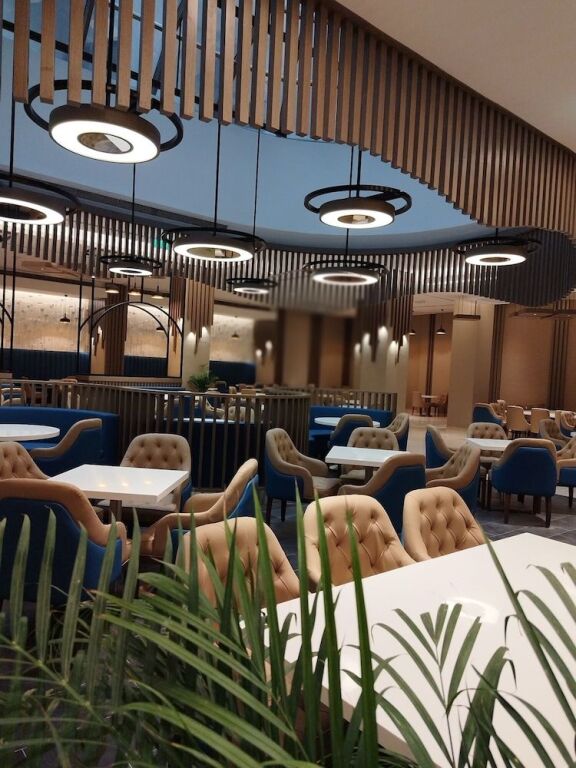 The hotel includes a restaurant and a café. A delicious breakfast provides energy for the rest of the day. There are meals available for those with special dietary requirements: diet meals and children's meals. The hotel also offers special catering options.
