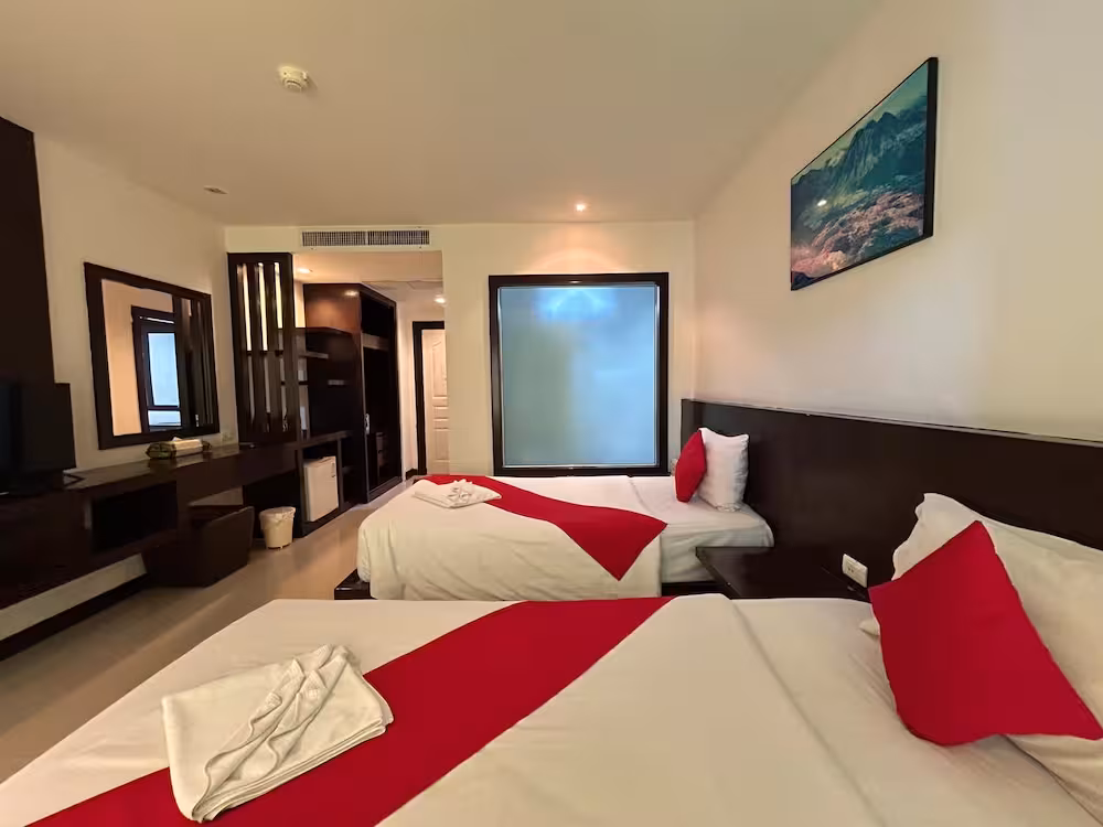 The resort is located right in the heart of Patong, a leisurely 10-minute walk to the beach and within convenient walking distance of Bangla Road, the major shopping and entertainment centres, the market, and sports and tourist spots, to name just a few. The closest bus station is about 2 km away and Phuket International Airport is approximately 25 km from the hotel.
